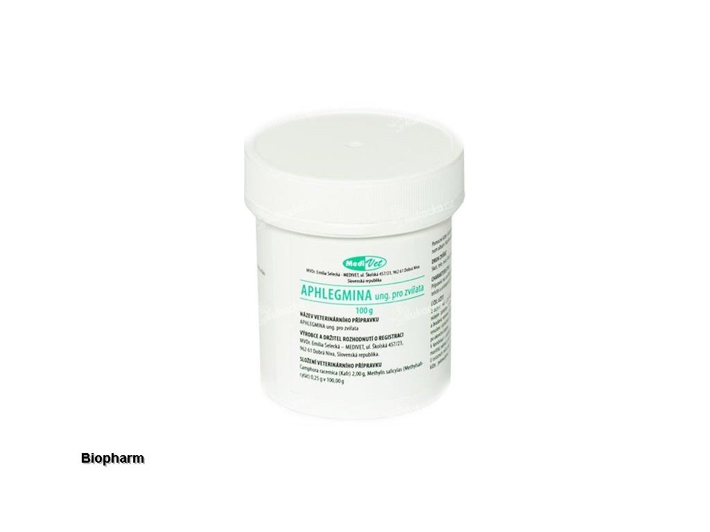 Aphlegmina mast je léčebný přípravek navržený pro vnější péči o citlivou a podrážděnou pokožku zvířat. Kombinace protizánětlivých a dekongestivních látek (např. heparin, protizánětlivé extrakty) napomáhá redukci otoků, zlepšení mikrocirkulace a regeneraci pokožky po úrazech, otocích nebo hematomech. Mast má jemnou konzistenci, dobře se roztírá a rychle vstřebává bez zanechání mastného filmu, což podporuje komfort zvířete při aplikaci.