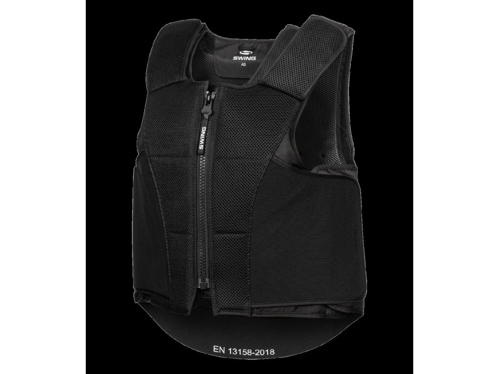 Splňuje nejvyšší bezpečnostní standardy EN 13158:2018 Level 3 & BETA Standard 3 a nabízí komplexní 360° všestrannou ochranu pro maximální bezpečnost. Díky čtyřvrstvému ochrannému panelu SWING-Flex o tloušťce pouhých 20 mm je tato vesta nejen pozoruhodně tenká, ale také výborně odvětraná, což umožňuje optimální přizpůsobení pohybu jezdce.