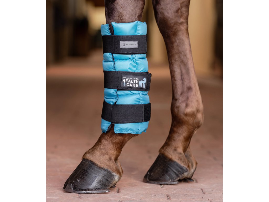 Terapie chladem jsou obecně považovány za obzvláště šetrné a účinné při akutních poraněních i při opatřeních na podporu zdraví. Chladicí boty Waldhausen, které se skládají z několika samostatných chladicích komor, zajišťují optimální regeneraci po sportovní zátěži a preventivně působí na udržení zdravých vazů, šlach a kloubů koňských nohou. Díky velkorysé velikosti je lze použít na přední i zadní nohy a pomocí elastických suchých zipů je lze ideálně přizpůsobit noze koně. V závislosti na požadavcích lze kamaše používat několikrát denně po dobu přibližně 20-30 minut. Před použitím by měla být kamaše uložena v chladničce po dobu nejméně 4-6 hodin nebo v mrazničce po kratší dobu. Během aplikace by kůň neměl být ponechán bez dozoru.