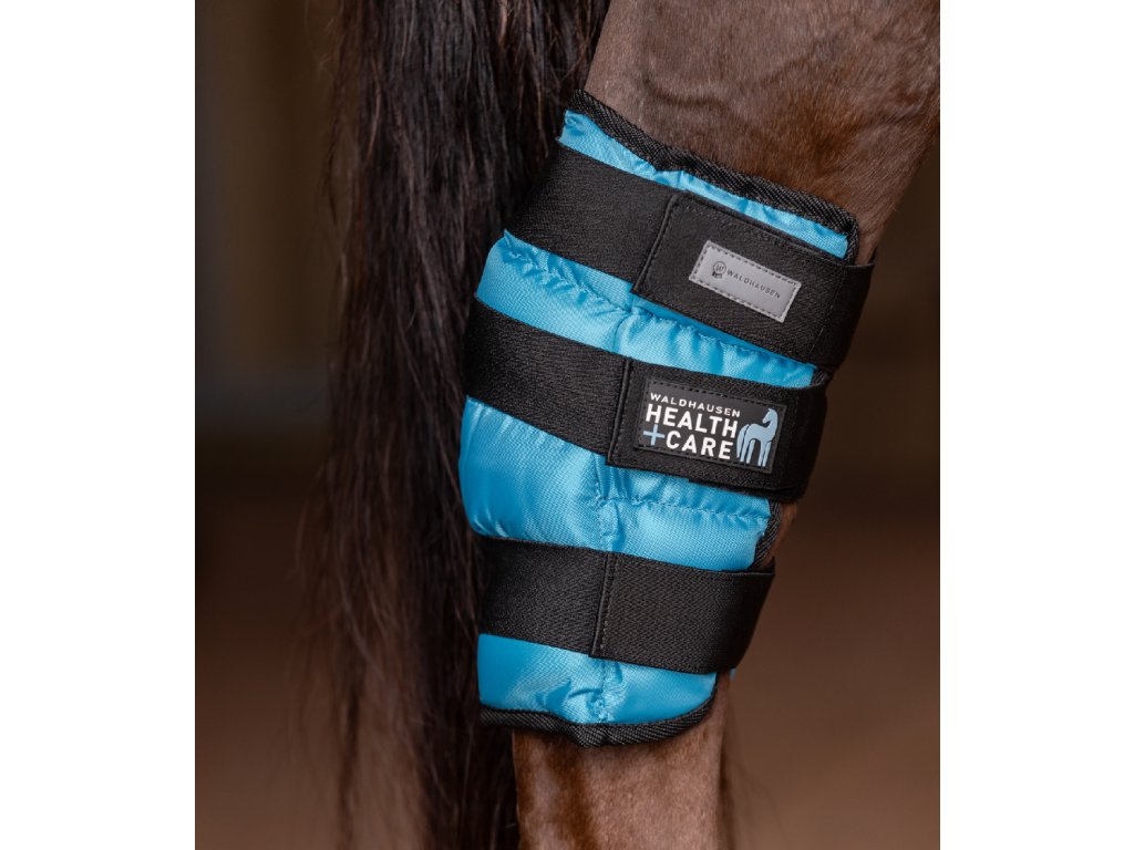 Chladicí bandáž Waldhausen Health & Care je určena k cílenému ochlazení kloubů u koní. Skládá se z několika samostatných chladicích komor, které se rychle a efektivně přizpůsobí dané oblasti. Bandáž se jednoduše upevňuje pomocí suchých zipů a je ideální po zátěži nebo při otocích. Pro správné použití se doporučuje vložit kamaše na krátkou dobu do chladničky či mrazničky. Chladicí komory nejsou odnímatelné, proto by bandáž neměla být v mrazničce ponechána příliš dlouho, aby nedošlo k přemrznutí.