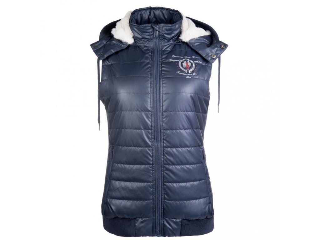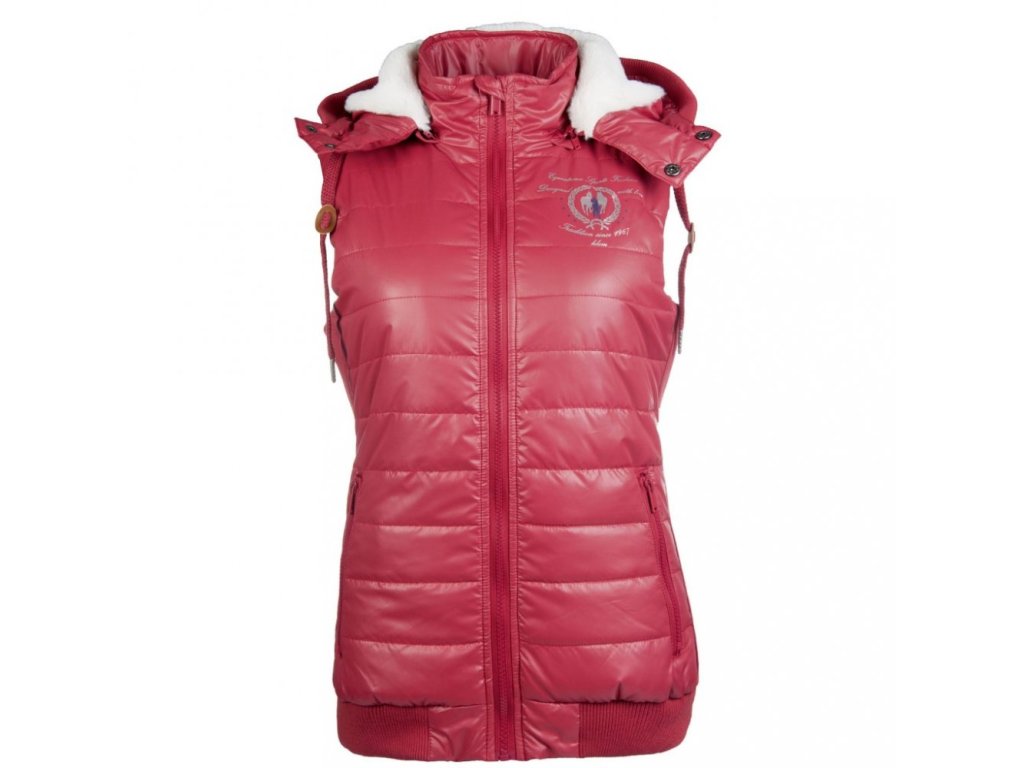 Dámská jezdecká vesta ASHLEY od značky HKM kombinuje atraktivní malinovou barvu s vysokou funkčností. Je vyrobena kompletně z polyesteru, což zaručuje hřejivost, větruodolnost a snadnou údržbu. Vnitřní výplň i podšívka zajišťují příjemný tepelný komfort. Vesta disponuje praktickou odepínací kapucí s imitací beránka, dvěma předními kapsami na zip a elastickými bočními panely pro lepší přilnutí k tělu. Lze ji prát v pračce na 30 °C a sušit v sušičce.