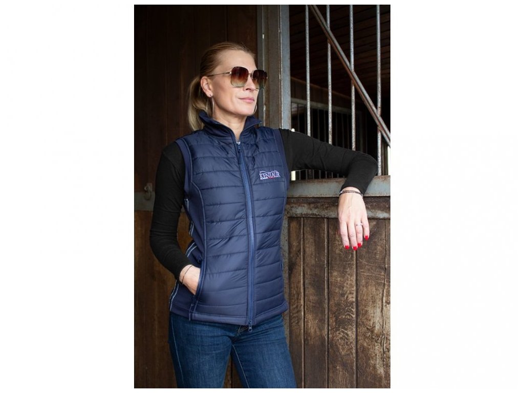 Dámská jezdecká vesta Kentaur je navržena pro pohodlné celoroční nošení. Lehká výplň zajišťuje tepelný komfort, zatímco prošívaný střih působí elegantně a přiléhavě. Boční díly z pružného materiálu umožňují volnost pohybu, a tak se vesta skvěle hodí i pro aktivní jezdecké využití. Dvě přední kapsy na zip nabízí praktické úložné místo pro drobnosti. Vesta je prodyšná a příjemná na dotek. Na hrudi decentní logo Kentaur.