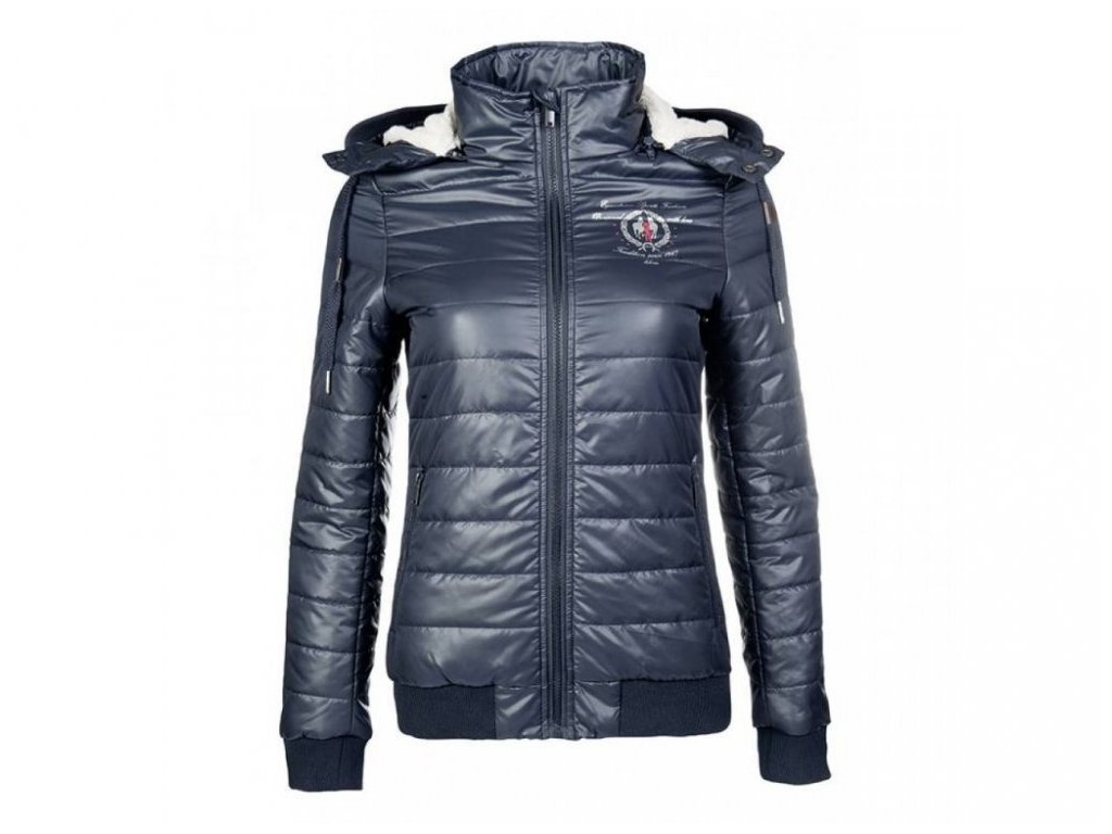 Dámská zimní bunda Ashley od HKM je ideálním společníkem pro chladné a větrné dny. Je vyrobena kompletně z polyesteru – vnější vrstva, podšívka i výplň. Bunda chrání před větrem, zároveň díky elastickým vsadkám na bocích poskytuje komfortní střih vhodný pro jízdu v sedle i každodenní použití. Odepínací kapuce nabízí flexibilitu dle počasí a potřeby. Prostorové kapsy na zip bezpečně udrží osobní věci.