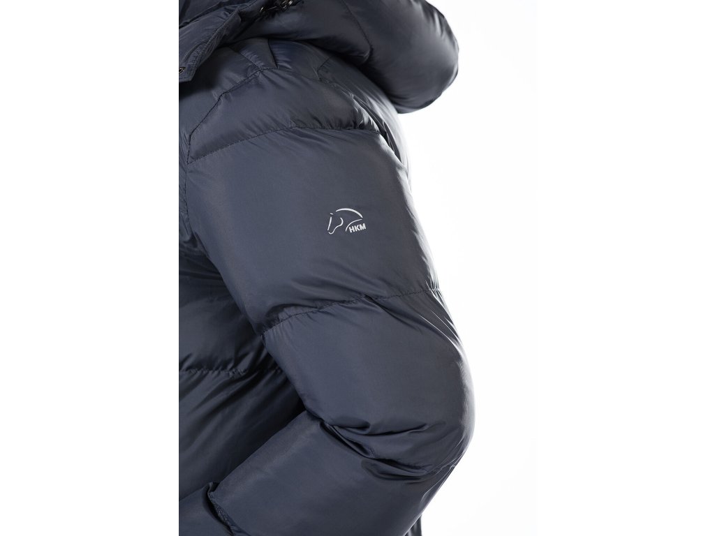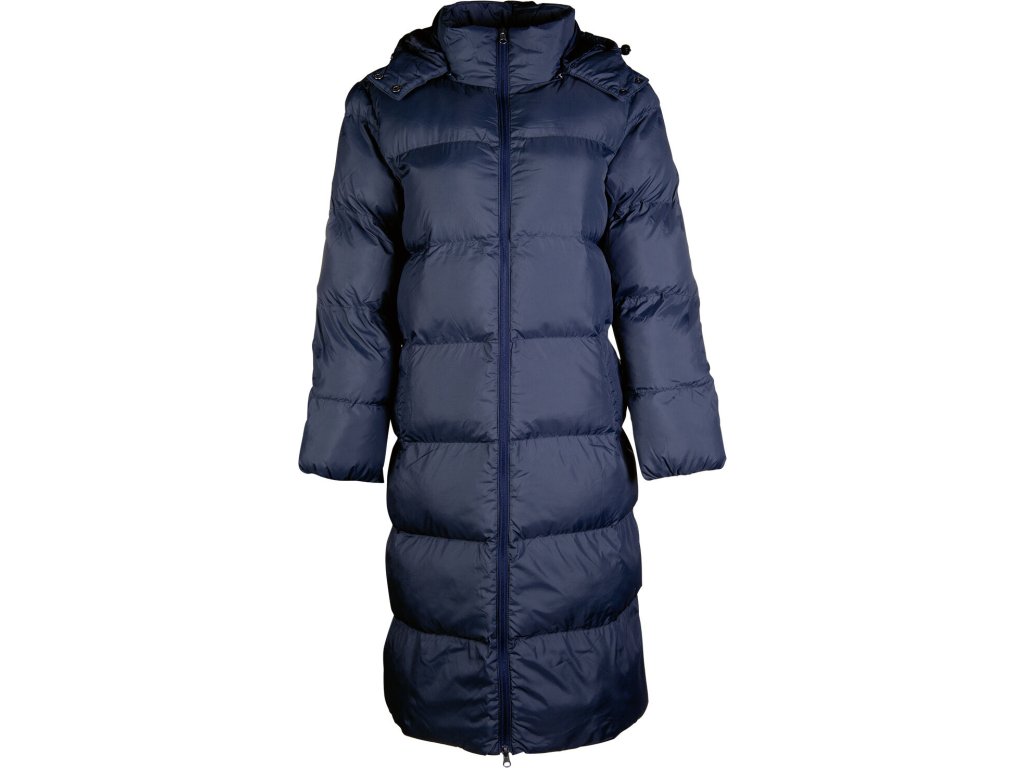 Dlouhý jezdecký kabát PRESTON – odepínací kapuce, modrý, HKM
