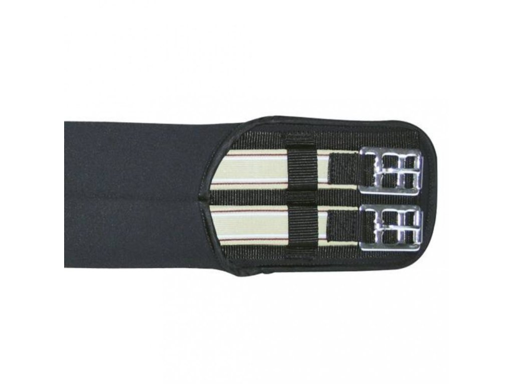 Tento podbřišník od výrobce HKM je navržen speciálně pro drezurní sedla. Neoprenový materiál je měkký, prodyšný a snadno se udržuje – lze prát v pračce na 30 °C. Dvojitá dotahovací guma na jedné straně zajišťuje rovnoměrné rozložení tlaku a větší komfort pro koně. Otočné přezky a kvalitní kování umožňují snadné a bezpečné připnutí. Anatomický tvar podbřišníku přispívá k ochraně před otlaky a podrážděním v citlivé oblasti.