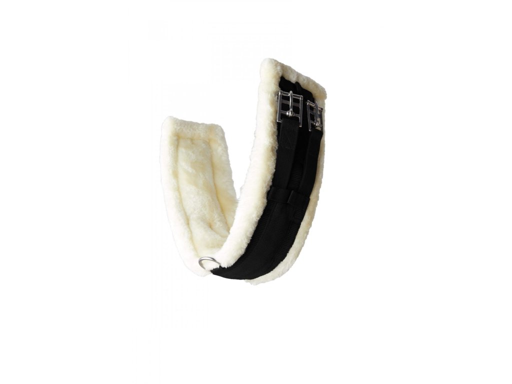 Tento drezurní podbřišník je navržen pro maximální komfort koně i snadnou manipulaci pro jezdce. Umělý beránek zajišťuje měkký kontakt s kůží a pomáhá předcházet odřeninám. Oboustranné elastické zakončení usnadňuje rovnoměrné dotažení. Přezky s válečky z nerezové oceli umožňují rychlé a přesné upnutí, zatímco centrální D-kroužek nabízí možnost připnutí pomocných otěží. Díky použitým materiálům je podbřišník lehký, odolný a pratelný v pračce na 30 °C.