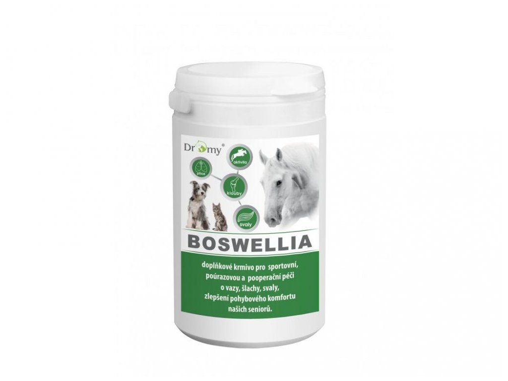 DROMY Boswellia je doplňkové krmivo pro koně s obsahem extraktu z pryskyřice stromu Boswellia serrata, který je známý svými protizánětlivými a analgetickými účinky. Je ideální pro koně s namáhaným pohybovým aparátem – sportující, starší nebo rekonvalescentní jedince.