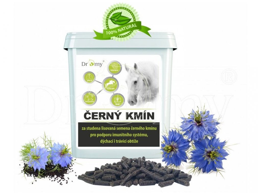 Dromy Černý kmín granule 3 kg „Přírodní podpora imunity, dýchání a trávení – 100 % černý kmín pro koně“