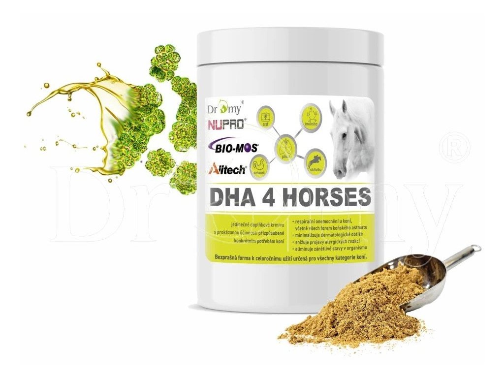 DHA 4 HORSES je roky prověřené speciální doplňkové krmivo s dobrou evidencí účinku u koňských alergiků.