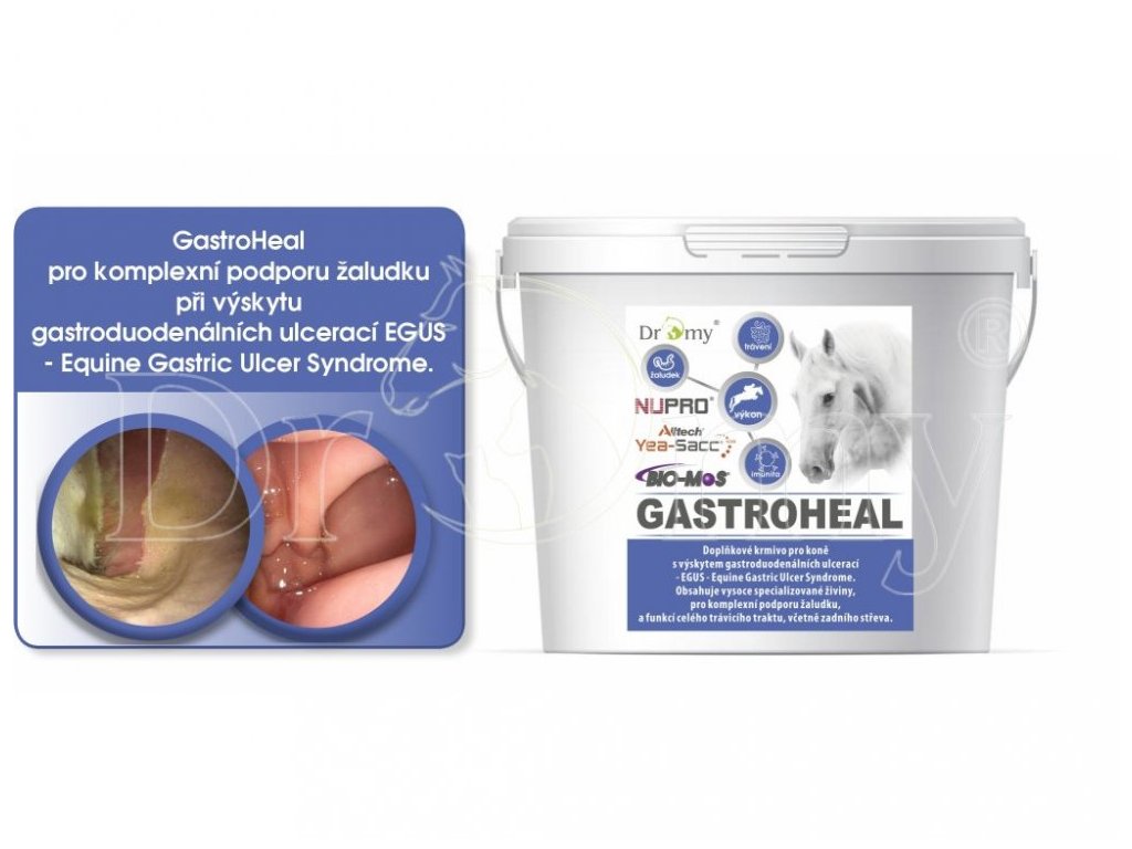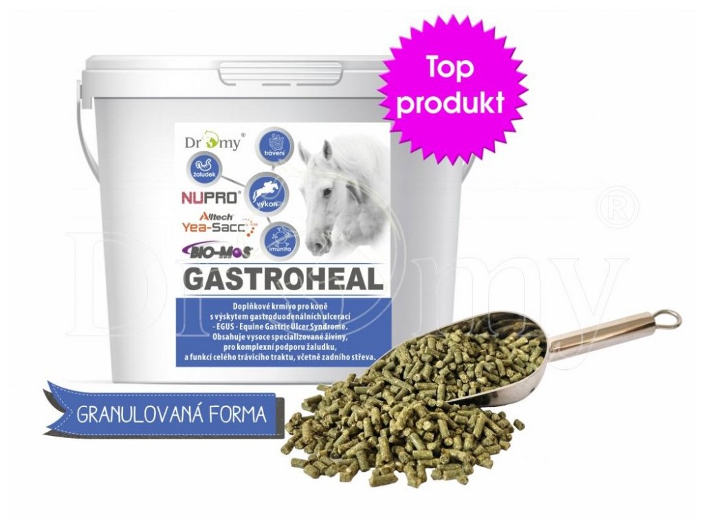 GastroHeal je komplexní, KONCENTROVANÉ GRANULOVANÉ doplňkové krmivo s nízkým alergenním potenciálem, určené pro koně s výskytem gastroduodenálních ulcerací - EGUS - Equine Gastric Ulcer Syndrome.