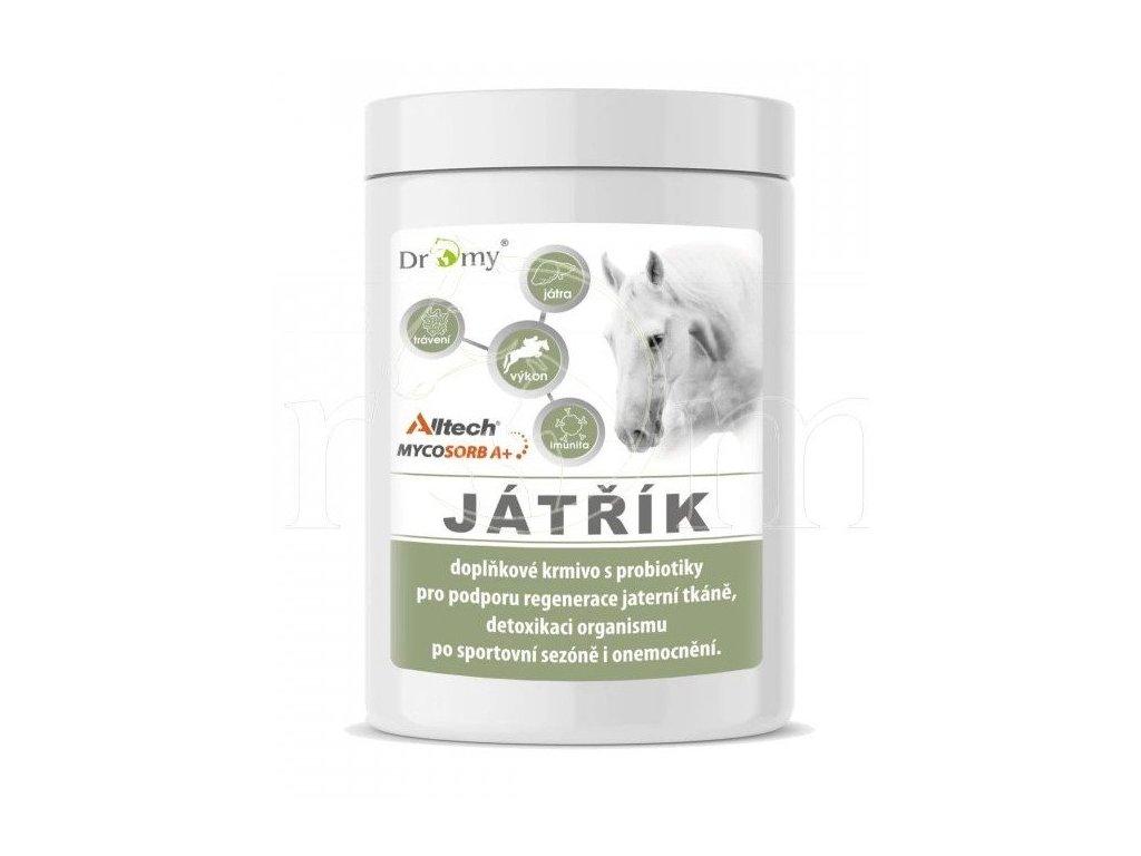 Doplňkové krmivo pro koně je zaměřeno především na detoxikaci a regeneraci organismu a odvod kyselin, toxinů a balastních látek z těla. Aktivuje hlavní detoxikační okruhy - játra, ledviny, plíce, tlusté střevo.Doporučuje se užívat po léčbě ATB, NSAD, zánětech trávicího traktu, pooperačních a poúrazových stavech, vysoké sportovní zátěži, ekzémech, alergiích, kožních onemocněních. Vhodné pro stresované a starší koně. Biologicky aktivní komplex zlepšuje využití látek obsažených v krmné dávce, podporuje a zkracuje medikamentózní léčbu, zlepšuje trávení, peristaltiku žaludku a střev. Fyzická i psychická pohoda koně úzce souvisí se zdravým zažíváním a správnou funkcí jater.Ostropestřec mariánský extrakt - obsahuje velké množství aktivních látek - silybin, silydianin, silychristin, chrání a posiluje jaterní buňky a podporuje jejich obnovu. Je mocným antioxidantem, brání poškození buněk a zlepšuje trávení tuků. Yucca shidigera extrakt - příznivě působí na metabolismus buněk vylučujících trávící enzymy, zlepšuje zažívání, využití a vstřebávání potravy. YEA SACC ®1026 - živá kvasinková kultura - probiotické mikroorganismy pro obnovu přirozené rovnováhy střevní mikroflóry a podporu vstřebávání živin.Ascophyllum nodosum - přírodní zdroj vitaminů, organicky vázaných prvků.DL- methionin - detoxikační i antioxidační aminokyselina, zdroj nezbytné síry, pomáhá z organismu odstraňovat volné radikály a těžké kovy.Urtica dioica - Kopřiva dvoudomá - má zcela mimořádné působení na metabolizmus a fyziologické funkce, zlepšuje látkovou výměnu, napomáhá při čištění organismu, zejména v oblasti krve, ledvin a jater, působí pozitivně při nedostatku železa v krvi. Doplňkové krmivo v granulované formě pro: podporu regeneraci jater, podpora detoxikace organismu po sportovní sezóně, indikace po onemocnění, aplikaci ATB, NSAID, pro koňské seniory Složení v kg: ostropestřec mariánský plod, nigella sativa, curcuma longa L.,YEA-SACC ®1026, řepík lékařský, kopřiva dvoudomá, Silymarin extrakt, heřmánek lékařský,ascophyllum nodosum, Yucca shidigera extrakt , pampeliška kořen, DL-methionin.Zootechnické doplňkové látky v 1 kg:Látky zvyšující stravitelnost, stabilizátor střevní flóry, mikroorganismy:Saccharomyces cerevisiae CBS 493,94 -10x1010CFU/1 kg.Nutriční doplňkové látky v 1 kg: aminokyseliny: DL-methionin 2 9000 mg.
