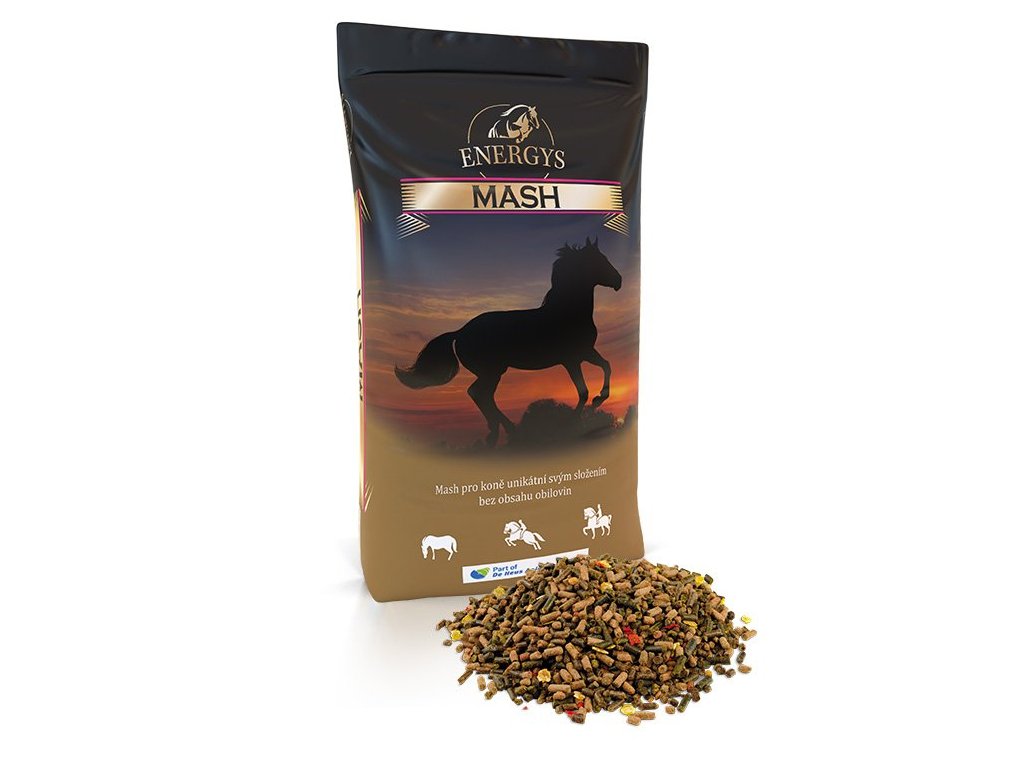 Energys Mash je šetrné, premiové, bezobilné krmivo určené k doplnění krmné dávky koní všech kategorií. Neobsahuje obiloviny ani melasu, a je tak ideální volbou pro koně s citlivým zažíváním, sklonem k laminitidě, metabolickými poruchami nebo pro seniory. Obsahuje vlákninu, lněné semínko a další lehce stravitelné složky, které podporují trávení, lesklou srst a celkovou kondici.