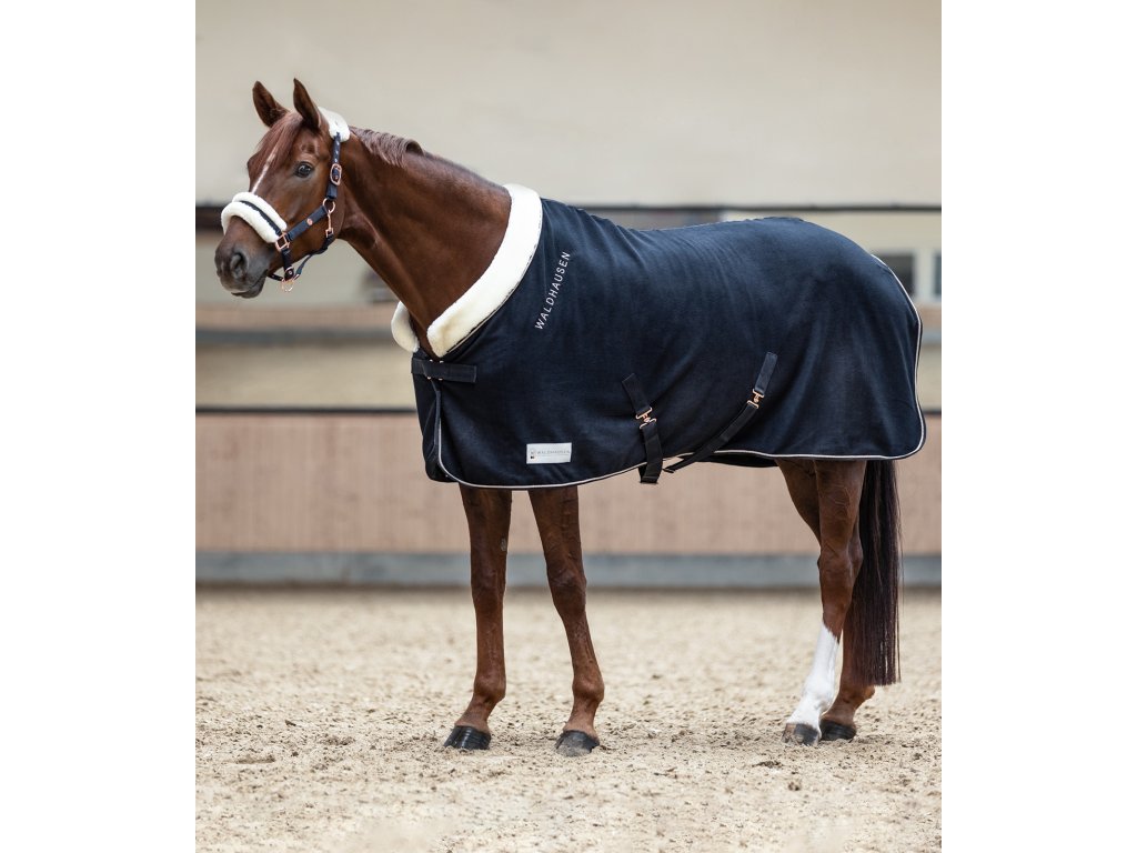 Fleesová deka Modern Rose od značky Waldhausen spojuje elegantní vzhled s funkčními vlastnostmi. Vyrobena z kvalitního antipillingového fleecu, který pomáhá odvádět vlhkost a zároveň chrání koně před prochladnutím po práci. Měkký límec ze syntetické kožešiny zajišťuje vysoký komfort v oblasti kohoutku. Deka je vybavena odnímatelnými křížovými popruhy, nastavitelným předním zapínáním a elegantní výšivkou. Hodí se pro použití ve stáji i při přepravě.