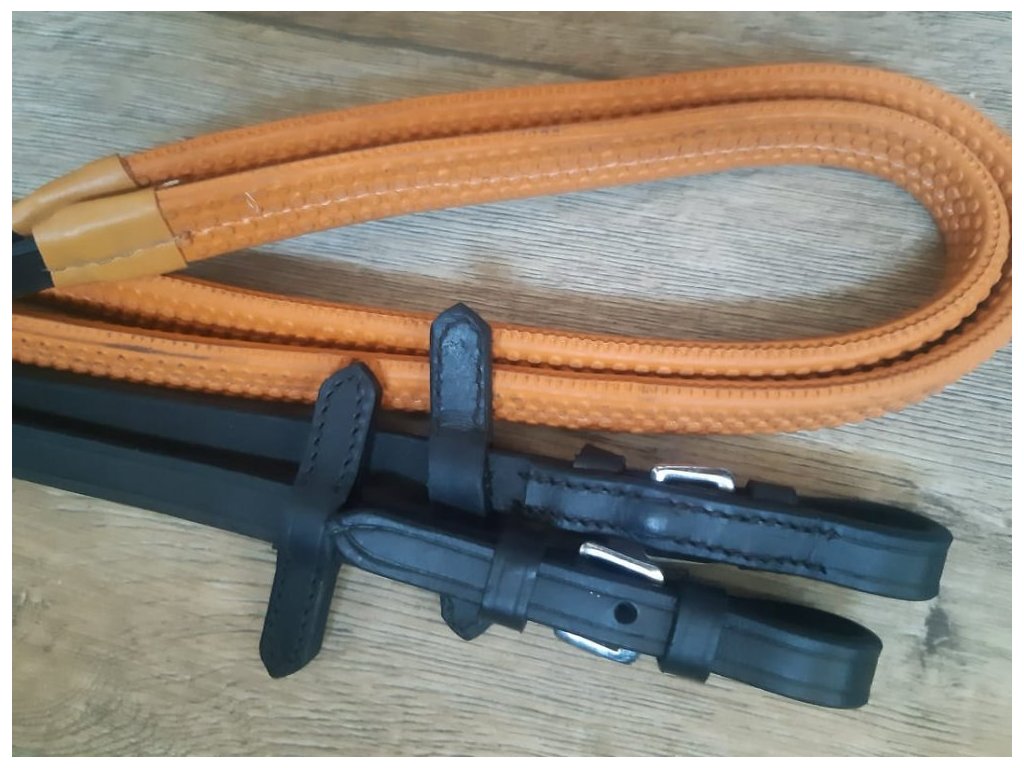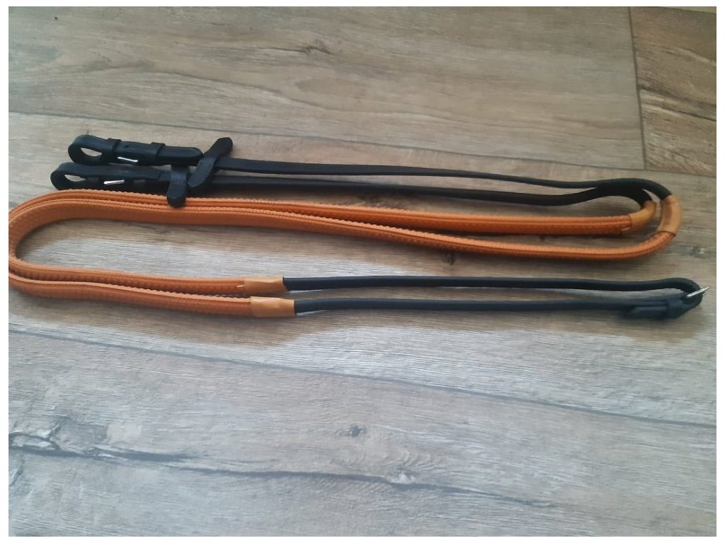Gumové otěže Mámekoně v zářivě oranžové barvě jsou skvělou volbou pro jezdce, kteří chtějí nejen funkčnost, ale i výrazný design. Protiskluzové provedení zajistí bezpečný úchop i ve vlhkých podmínkách. Otěže jsou odolné, snadno se čistí a výborně drží v ruce. Ideální pro každodenní práci s koněm i do sportovního prostředí.