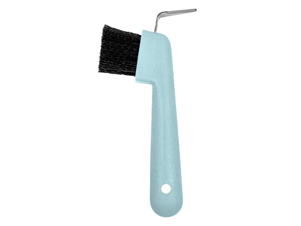 Robustní háček na kopyta s kartáčem. Snadné použití pro důkladné čištění kopyt.