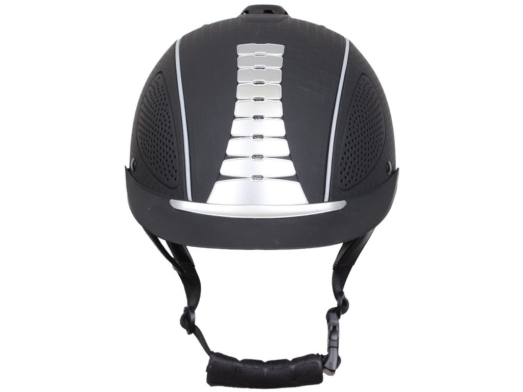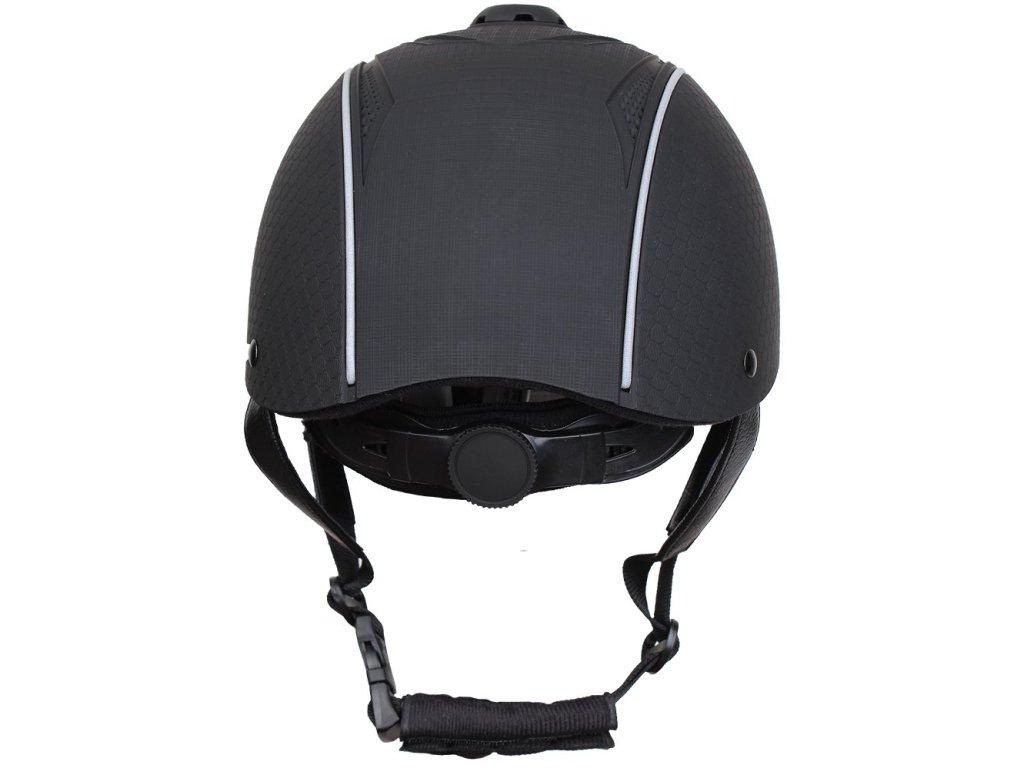 Jezdecká helma Kentaur Victoria je vybavena pevnou vnější skořepinou s matným povrchem, který je odolný vůči poškrábání a snadno se čistí. Splňuje přísnou evropskou normu VG1.01.040 2014‑12, což zaručuje vysokou úroveň ochrany. Uvnitř se nachází kvalitní polstrování, které je pohodlné a měkké na dotek. Helma je příjemně odvětraná, takže udržuje optimální teplotu i při náročných jízdách. Zapínání je klasické, ale pohodlné, s robustní přezkou. Nastavitelný systém s otočným kolečkem umožňuje přesné přizpůsobení velikosti hlavy.