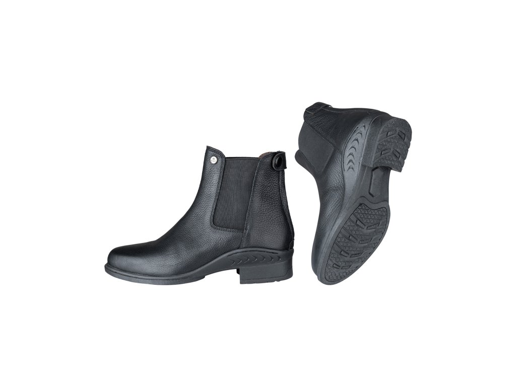 Jezdecká perka Dublin jsou navržena pro každodenní použití ve stáji i při ježdění. Svršek z měkké, celokožené ražené hovězí kůže je prodyšný, odolný a příjemný na nošení. Vnitřní kožená podšívka dobře absorbuje pot a přispívá k pohodlí. Zadní zip YKK® je zajištěn koženým krytím s elastickým páskem a drukem s logem ELT. Elastické boční vsadky umožňují optimální přizpůsobení noze. Gumová podrážka s dynamickým dezénem, pevnou patou a výrazným logem ELT zajišťuje stabilitu při chůzi i v třmenech.