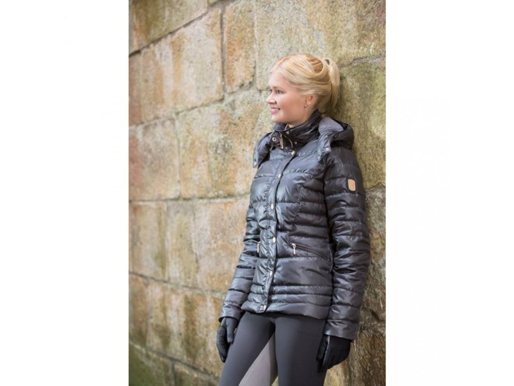 Bunda SIENA od HKM má prošívanou konstrukci s výplní a podšívkou z polarfleecu, která zajišťuje vysokou tepelnou izolaci. Materiál je prodyšný, větruodolný a snadno se čistí. Střih je přiléhavý, ale díky postranním zipům také praktický při ježdění. Bunda je vybavena oboustranným zipem s légou, odepínací kapucí a třemi kapsami – dvěma vnějšími na zip a jednou vnitřní.