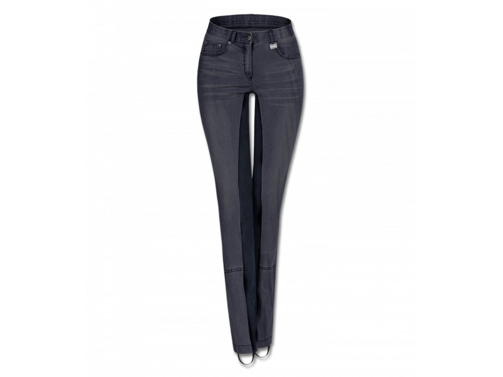 Jezdecké pantalony v barvě riflově modrá.