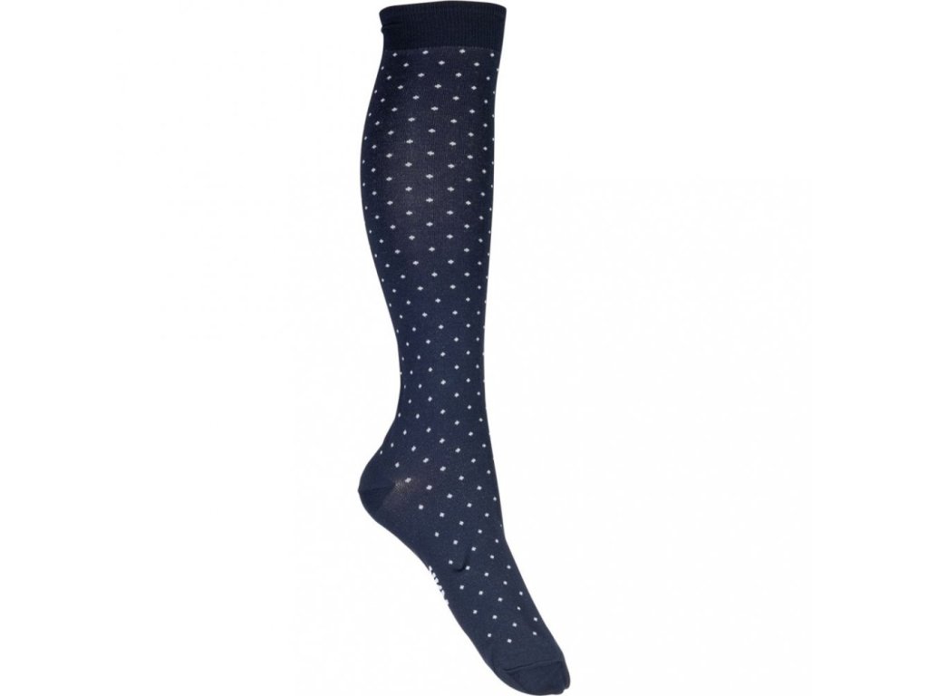 Podkolenky se vyznačují jemným tečkovaným vzorem, který dodává klasický a sofistikovaný vzhled. Jsou vyrobeny z kombinace 95 % polyamidu a 5 % elastanu. Tato směs zajišťuje, že ponožky jsou vysoce elastické, příjemné na dotek a skvěle drží na noze bez shrnování, což je klíčové pro pohodlí v jezdeckých botách. Polyamid přispívá k odolnosti a rychlému schnutí, zatímco elastan zajišťuje perfektní flexibilitu.