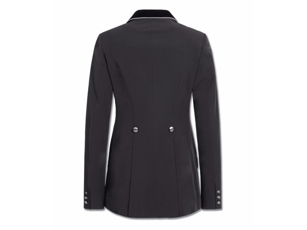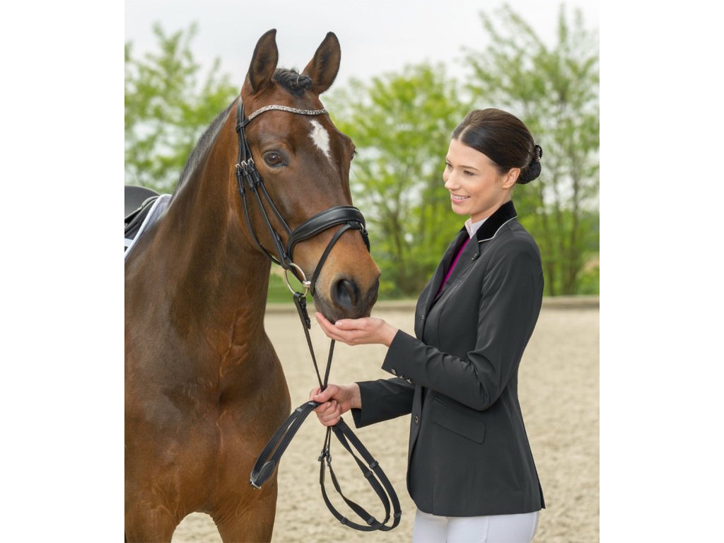 Sako London je navrženo pro pohodlí a reprezentativní vzhled při jezdeckých závodech i tréninku. Díky elastickému materiálu s podšívkou je příjemné na nošení a neomezuje v pohybu. Zadní rozparek zajišťuje volnost při sezení v sedle. Semišový límec s decentním lemováním dodává saku elegantní styl, který podtrhují také kovové knoflíky. Nechybí ani praktické kapsy – dvě s klopami a jedna na zip.