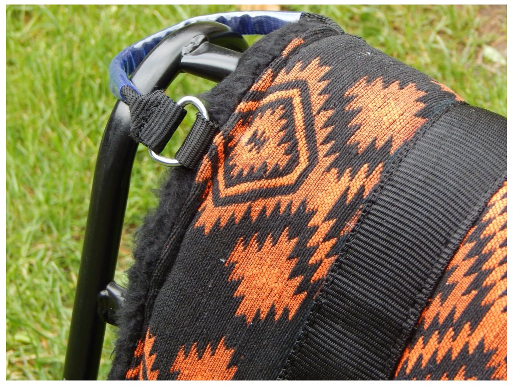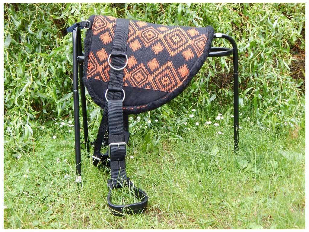 Jezdecký pad CALIMERO je ideální volbou pro pohodlnou jízdu bez sedla. Díky podšití z měkkého umělého beránku poskytuje komfort jak jezdci, tak koni. Součástí balení je podbřišník se dvěma přezkami, plastové třmeny a nylonové třmenové řemeny. V přední části padu je poutko pro držení, které zvyšuje bezpečnost a stabilitu během jízdy. K dispozici ve dvou barevných kombinacích – oranžovo-černé a fialovo-černé. Velikost PONY má délku v zádech 45 cm, velikost FULL 62 cm.