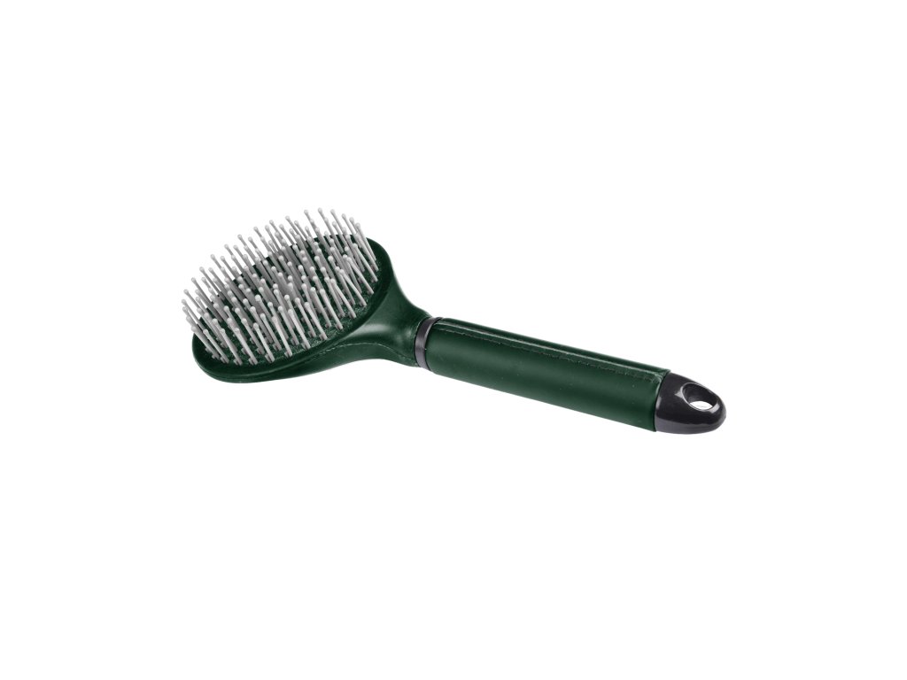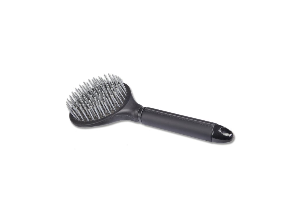 Kartáč na hřívu a ocas s kvalitní rukojetí z imitace kůže .