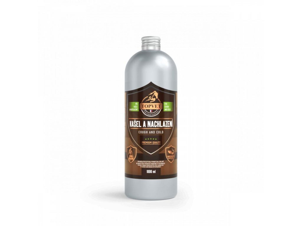 TOPVET Kašel a nachlazení sirup 1000 ml je přírodní bylinný doplněk pro koně, určený k podpoře horních cest dýchacích. Obsahuje směs tradičních bylin, jako je jitrocel, tymián, lékořice nebo mateřídouška, které působí expektoračně, zmírňují dráždivý kašel a usnadňují vykašlávání. Sirup je vhodný pro koně při nachlazení, zahlenění nebo kašli způsobeném prašným prostředím či změnami počasí. Přirozeně podporuje imunitní systém a regeneraci dýchacích cest.
