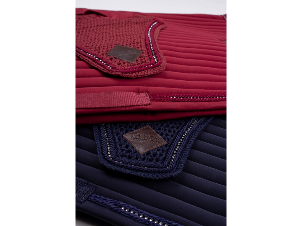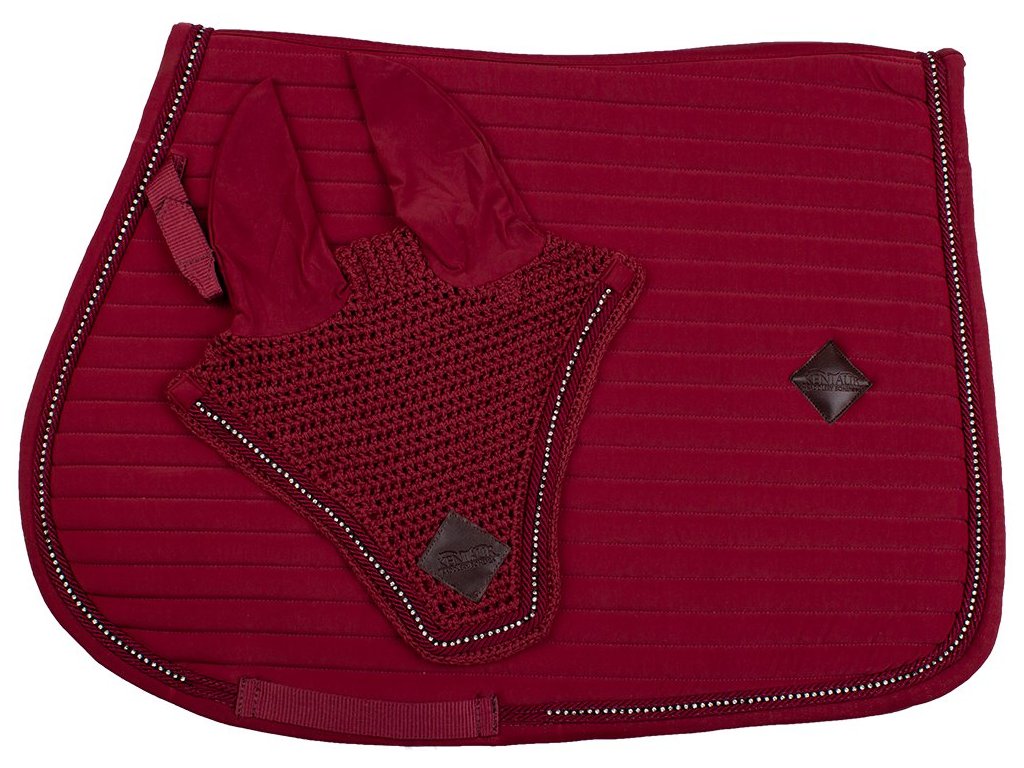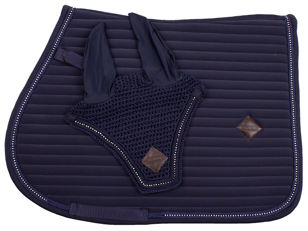 Tento designový set od značky Kentaur zahrnuje podsedlovou dečku a náušníky v jednotném stylu. Dečka vyniká vodorovným prošíváním a je vyrobena z prodyšného softshellového materiálu, který zajišťuje komfort při jízdě. Luxusní vzhled dotváří jemné perličkové lemování a decentní kožené logo Kentaur. Praktický nylonový pásek umožňuje snadné a pevné protažení podbřišníku. Náušníky jsou sladěné s dečkou a tvoří reprezentativní komplet vhodný pro trénink i závody.