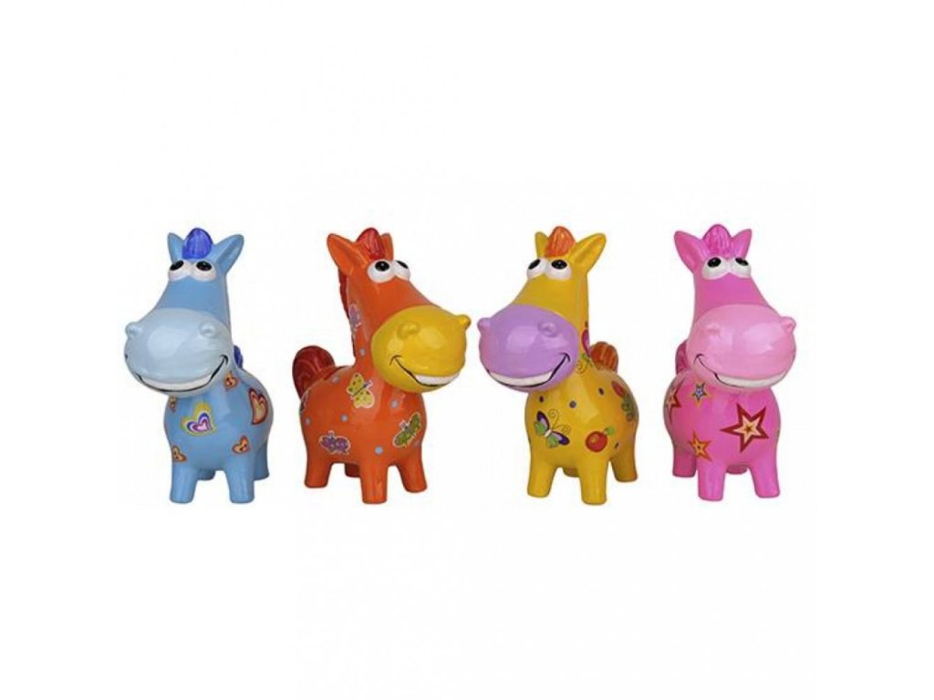 Originální keramická kasička ve tvaru usměvavého koně je ideálním dárkem pro malé i velké milovníky koní. Vesele barevné provedení ozdobí každý pokoj a současně pomůže s prvními úsporami. V nabídce poslední kus v modré barvě.
