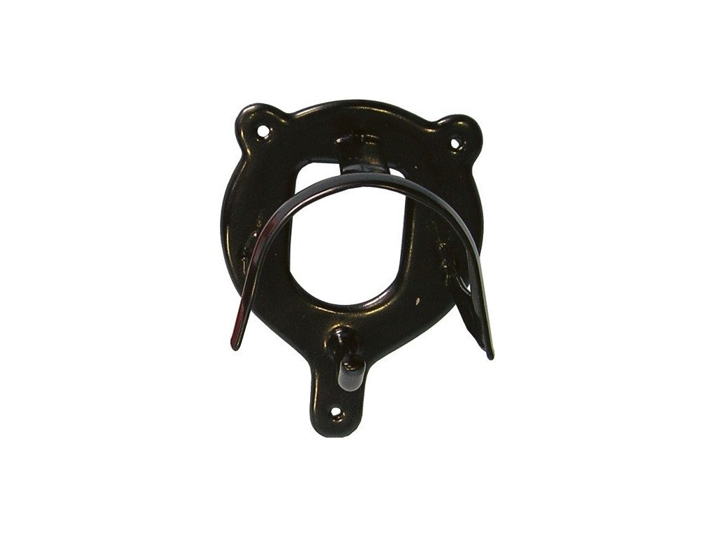 Kovový držák na uzdečku je praktickým a stabilním řešením pro zavěšení uzdeček ve stáji, sedlovně nebo v přívěsu. Díky tvarovanému oblouku udržuje tvar čelenky a zajišťuje, že uzdečka nebude deformovaná. Ve spodní části je háček, který lze využít na další drobné vybavení. Povrchová úprava v černé barvě zajišťuje dlouhou životnost a odolnost proti korozi. Montáž pomocí čtyř otvorů pro šrouby.