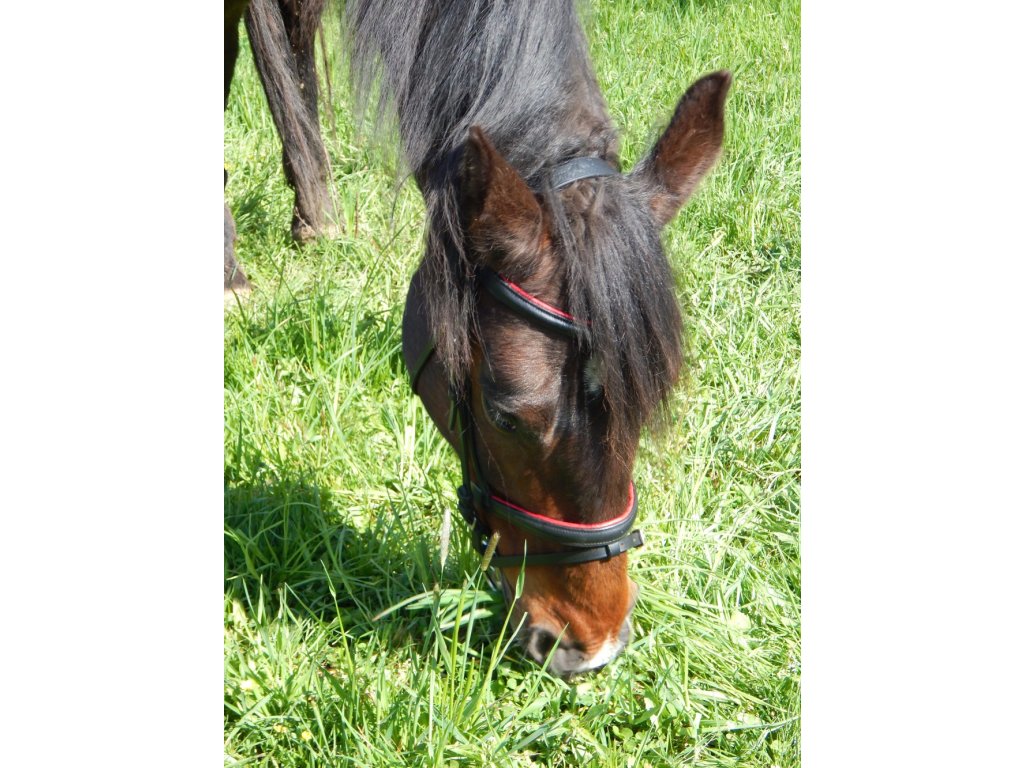 Uzdečka Mámekoně v černé barvě s kontrastním červeným podložením přináší atraktivní design a maximální pohodlí. Je vyrobena z kvalitní kůže a doplněna plátěnými otěžemi, které zajišťují jistý úchop. Červené podložení dodává uzdečce jedinečný charakter – ideální volba pro jezdce, kteří chtějí vyniknout. Vhodná pro každodenní tréninky i slavnostní příležitosti.