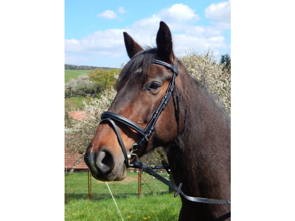 Tato černá uzdečka z kvalitní kůže od značky Mámekoně nabízí klasický styl s důrazem na pohodlí koně. Čelenka i nánosník jsou měkce podložené a zajišťují komfort během ježdění. V balení najdete také plátěné otěže, které doplňují funkčnost celé soupravy.
