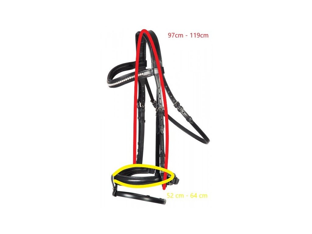 Součástí balení: sladěné kožené otěže – kompletní sada
