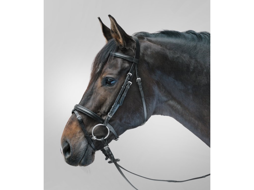Uzdečka STAR Lifestyle od značky Waldhausen je praktickou volbou pro každodenní ježdění. Je vyrobena z kvalitní černé kůže a vybavena kombinovaným anglickým nánosníkem a rovnou čelenkou, obojí měkce podloženo pro vyšší pohodlí koně. Poniklované přezky ve stříbrném provedení dodávají uzdečce dlouhou životnost a elegantní vzhled. Součástí jsou bavlněné otěže se zarážkami, ve velikostech Mini Shetty a Shetty o šířce 16 mm, u ostatních velikostí 19 mm. K dispozici v černé barvě a širokém rozsahu velikostí.