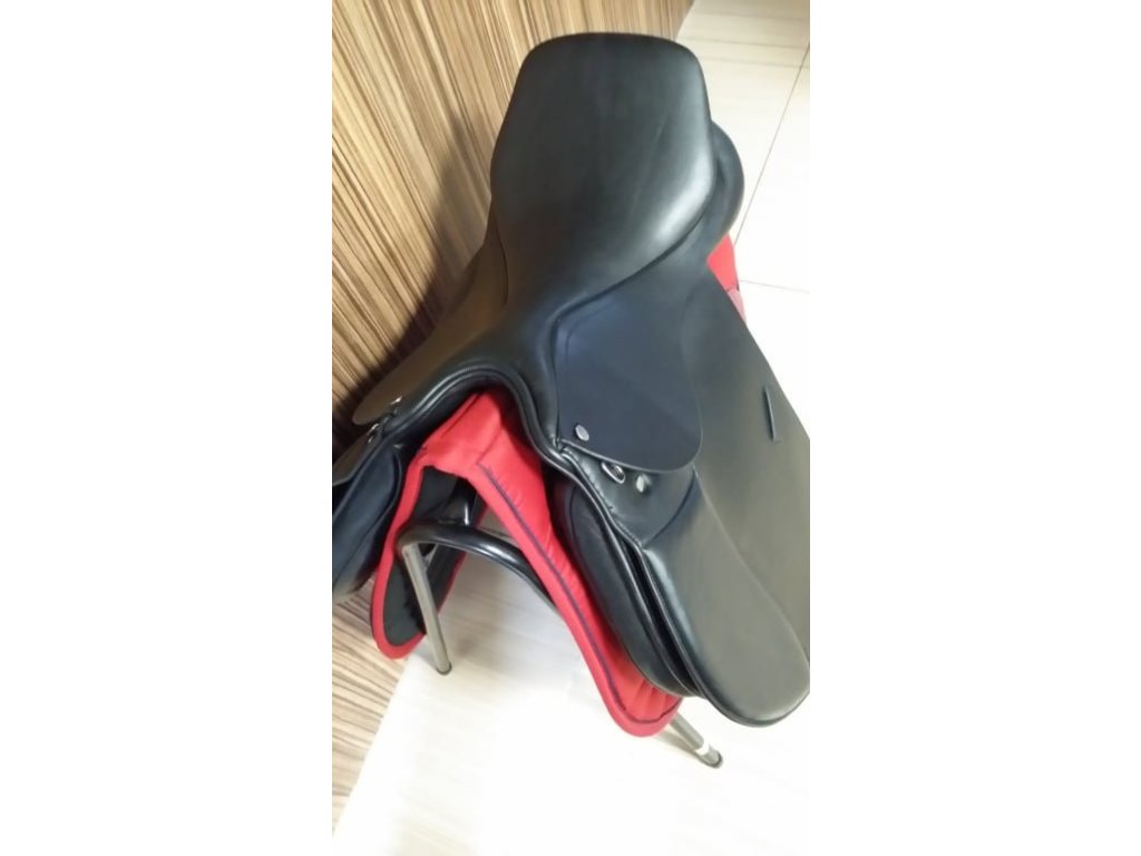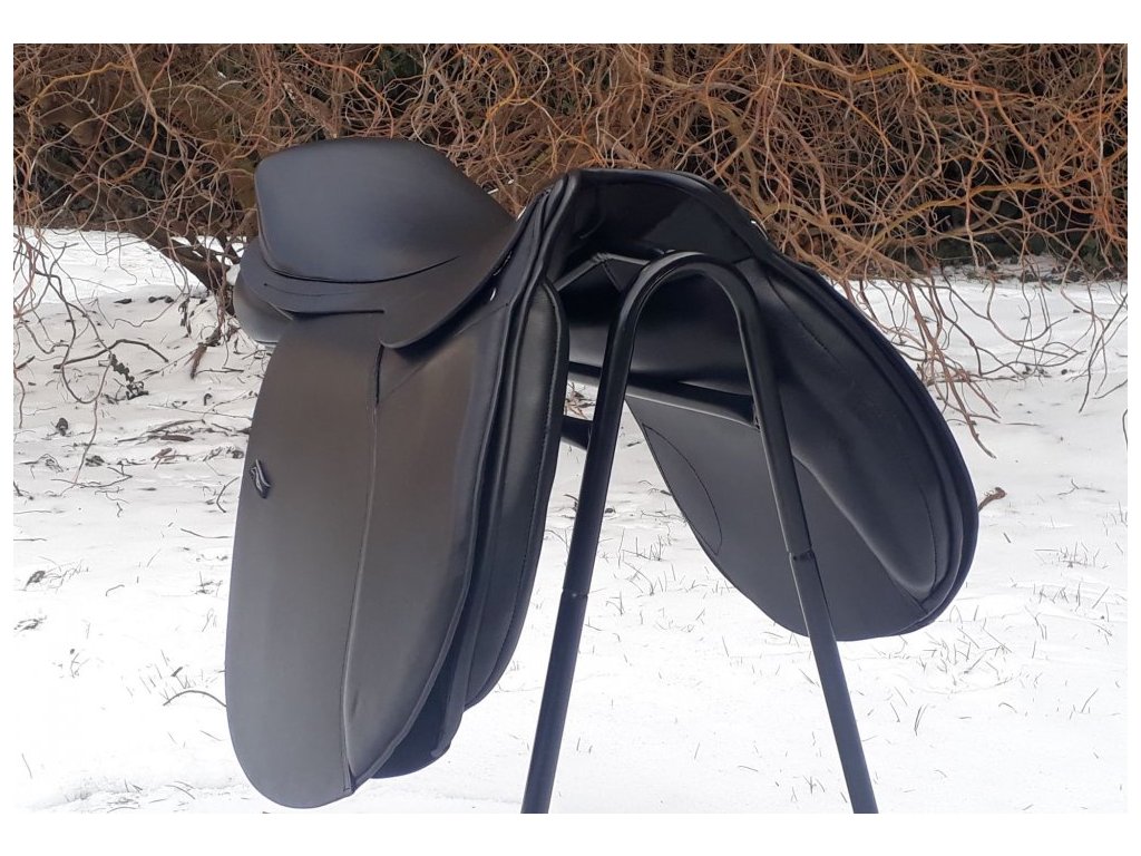 Kožené všestranné skokové sedlo REVO I je ideální volbou pro jezdce, kteří požadují pohodlí a spolehlivou oporu. Sedlo má měkké posedlí a bočnice pro příjemný kontakt s koněm. Zadní hranatá rozsocha a otevřená přední komora pomáhají správnému usazení. Přední kolenní opěrky lze snadno nastavit díky suchému zipu, zatímco pevné zadní opěrky drží nohu ve stabilní pozici. Elegantní černý design doplňuje profesionální vzhled.