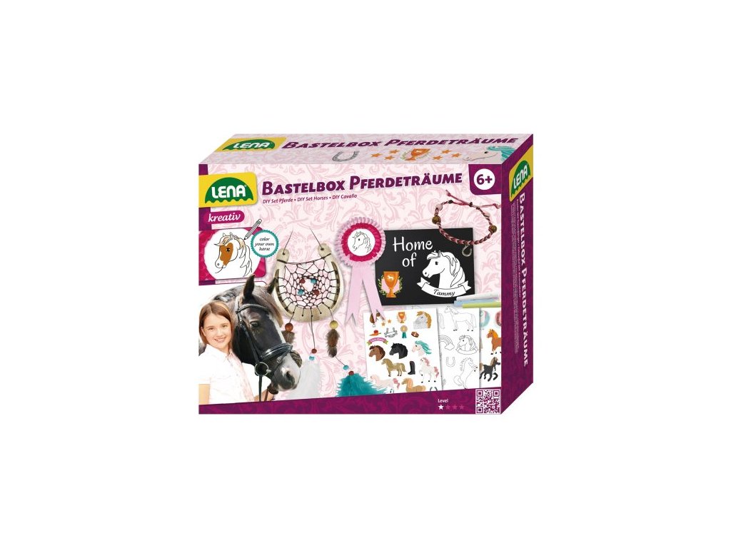 Kreativní box Waldhausen PONY nabízí vše potřebné k výrobě originálních doplňků s koňskou tematikou. Děti si mohou vytvořit vlastní lapač snů ve tvaru podkovy, jmenovky, kokardy, náramek či ozdobit úložný box. Díky barevným stuhám, korálkům a dekoracím rozvíjí tvořivost a jemnou motoriku. Sada je ideální jako dárek pro malé milovníky koní a koníčků. Vhodné pro děti od 6 let.