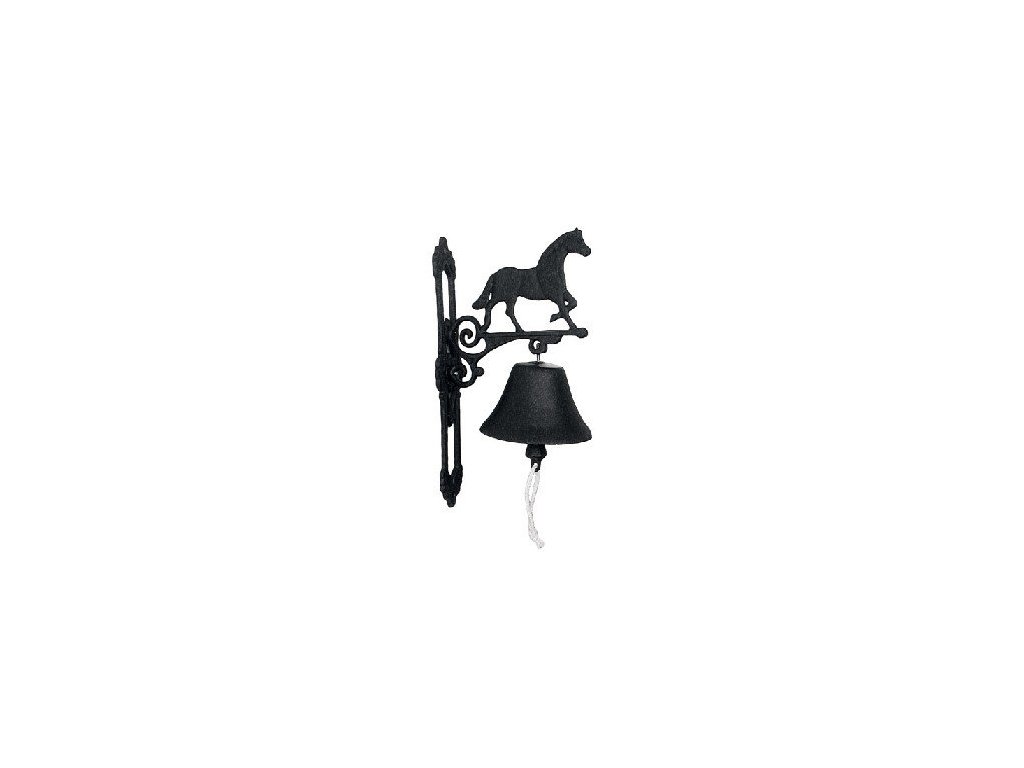 Litinový zvonek černý s koníkem – HKM, výška 34 cm
