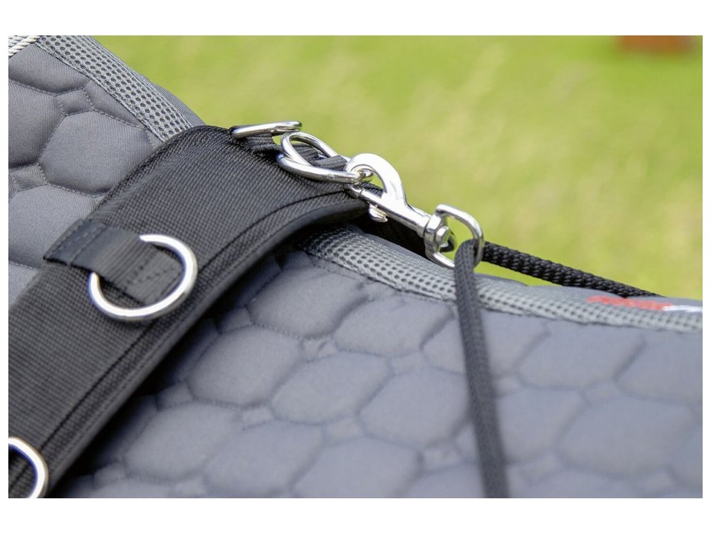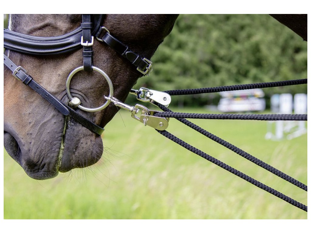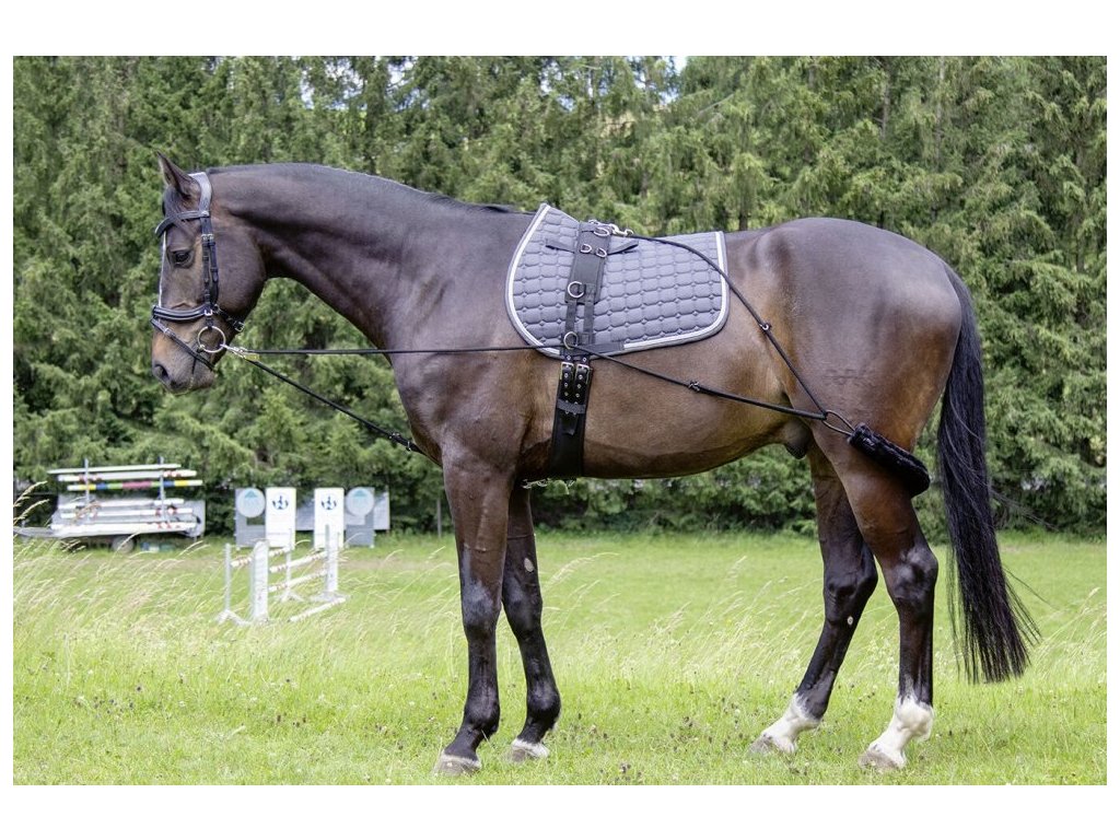 Tento lonžovací postroj od značky HKM je navržen pro efektivní trénink koně na lonži. Podporuje aktivaci zádových svalů a zadních končetin, čímž napomáhá správnému držení těla a pohybu koně. Elastický zadní popruh s měkkým polstrováním zajišťuje pohodlí a minimalizuje riziko odřenin. Postroj je vybaven zacvakávacími sponami pro snadné a rychlé nasazení. Odnímatelné polstrování lze snadno vyjmout a vyprat, což usnadňuje údržbu. Velikost cob/full je vhodná pro většinu koní.