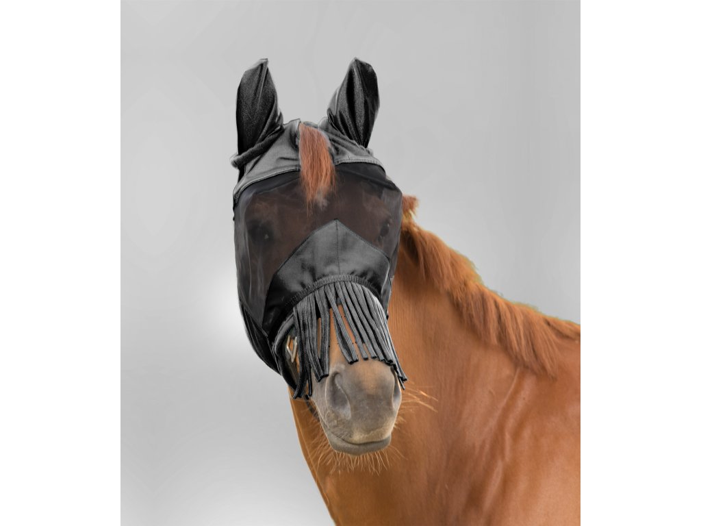 Maska PREMIUM Fly Mask s ochranou uší a třásněmi na nose, UV
