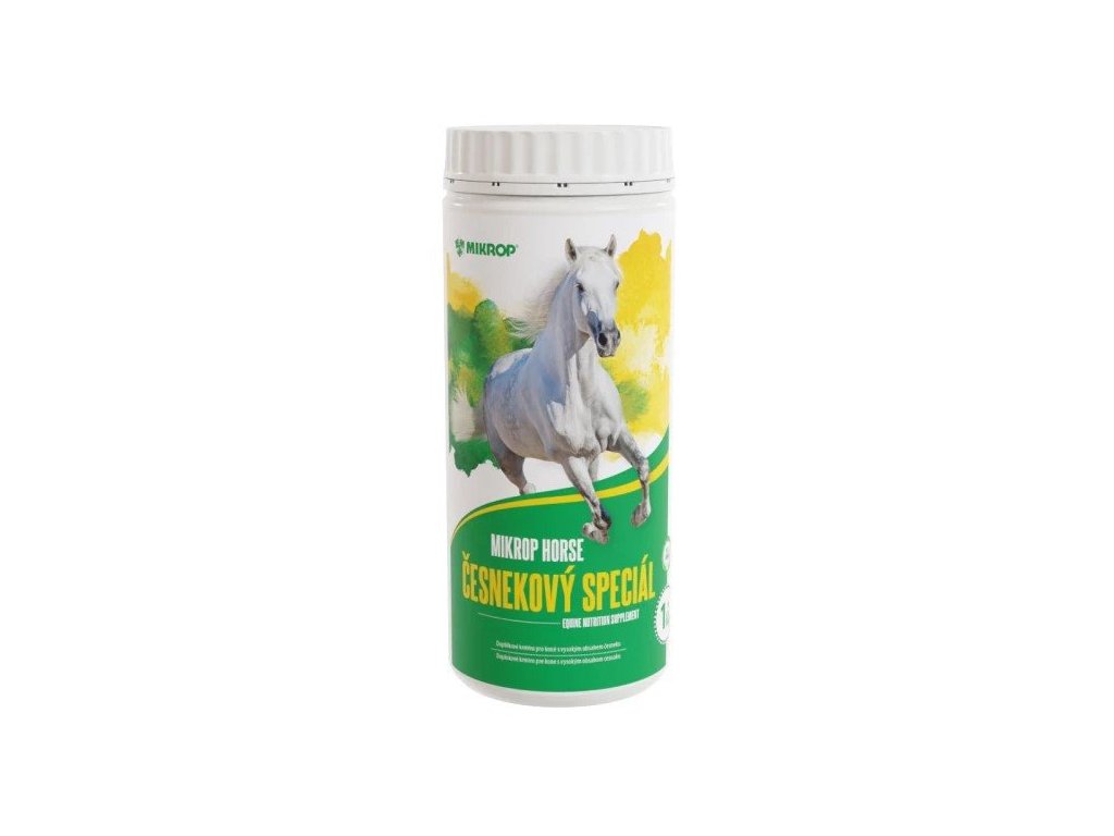 Mikrop Horse Česnekový speciál kombinuje jemně mletý sušený česnek a pivovarské kvasnice, přičemž dodává prospěšné baktericidní, antiparazitní a probiotické účinky. Podporuje chuť k jídlu, zlepšuje trávení a vstřebávání živin, stimuluje imunitu zejména v období zima–jaro, chrání dýchací cesty a při dlouhodobém letním použití má samozřejmě i repelentní („odpudivý“) účinek proti hmyzu.