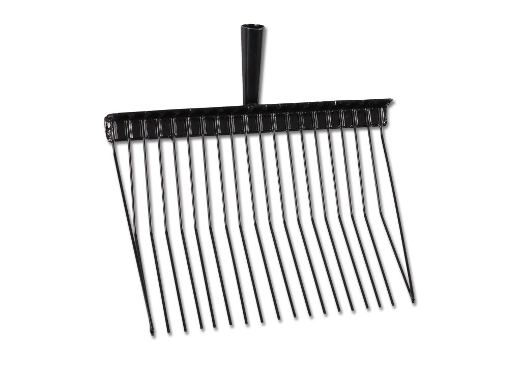 Kovové místovací vidle s povrchovou úpravou jsou určené pro efektivní odstraňování hnoje z boxů se slámovou nebo hoblinovou podestýlkou. Nabízejí robustní konstrukci, odolnou proti ohybu, s optimálním rozložením hrotů. Díky otvoru o průměru cca 2,5 cm jsou vhodné pro standardní násady, které se upevňují pomocí šroubu. Praktické a spolehlivé řešení do každé stáje.