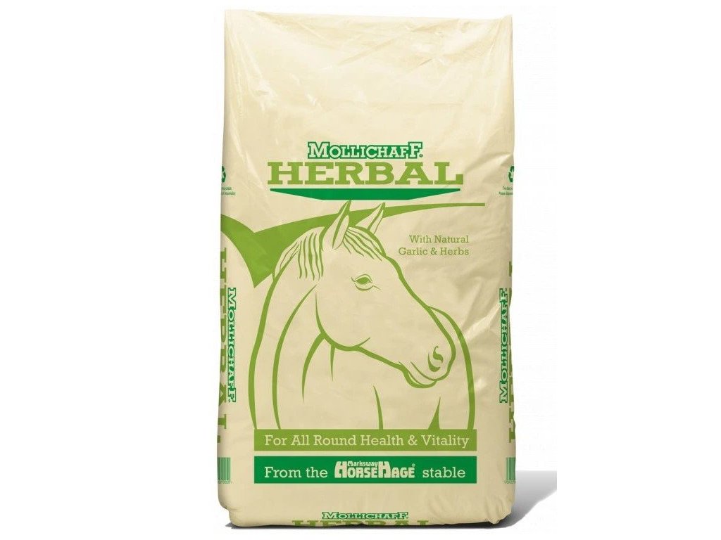 Mollichaff Herbal je vhodný jako doplněk k jádrovému krmivu nebo jako ochucující složka pro zvýšení chutnosti krmné dávky. Výborná volba pro koně v lehké až střední zátěži nebo pro zpestření krmného režimu.