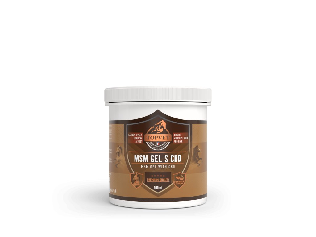 TOPVET MSM gel s CBD je pečlivě sestavená kombinace MSM (methylsulfonylmethan) a kanabidiolu (CBD), doplněná o hydratační složky, která přispívá k funkci kloubů, svalové uvolněnosti a celkové regeneraci po zátěži. Gel se snadno vmasíruje do pokožky, poskytuje osvěžující pocit a podporuje komfort zvířete. Je vhodný například pro koně s omezenou pohyblivostí nebo při zotavování po vyšší fyzické aktivitě