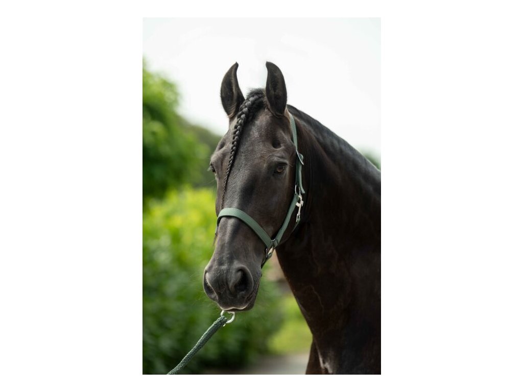 Ohlávka STARS Economy HKM v khaki barvě je ideální volbou pro běžnou péči a manipulaci s koněm. Nylonový materiál zajišťuje pevnost a dlouhou životnost, zatímco klasická karabina a kovové přezky ve stříbrné barvě umožňují snadné používání. Díky příjemnému materiálu je ohlávka šetrná k srsti i pokožce koně.
