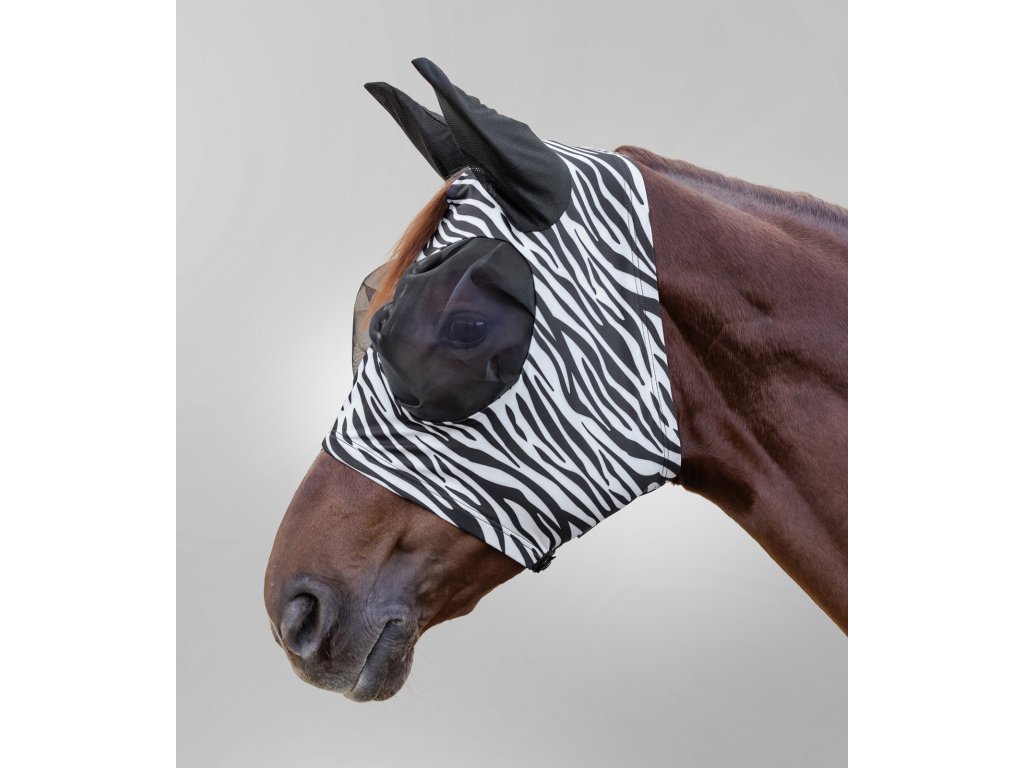 Maska PUCK poskytuje koni spolehlivou ochranu proti obtěžujícímu hmyzu. Díky elastickému materiálu perfektně sedí a nedává muchám žádnou šanci. Dlouhý zip usnadňuje nasazení i sejmutí. Zbarvení v černo-bílém zebra vzoru působí na hmyz odpuzujícím efektem a zvyšuje účinnost ochrany. Kůň má zároveň volné zorné pole pro přirozený výhled.