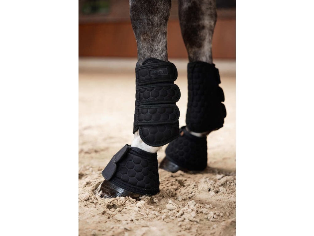 Kamaše Horze Urban Vitality poskytují spolehlivou ochranu koňských nohou při práci a tréninku. Vnitřní neoprenová vrstva tlumí nárazy a zajišťuje pohodlí, zatímco embosovaný polyesterový povrch dodává odolnost proti opotřebení. Zapínání na suché zipy je snadné a bezpečné – menší velikosti mají dva pásky, větší tři.