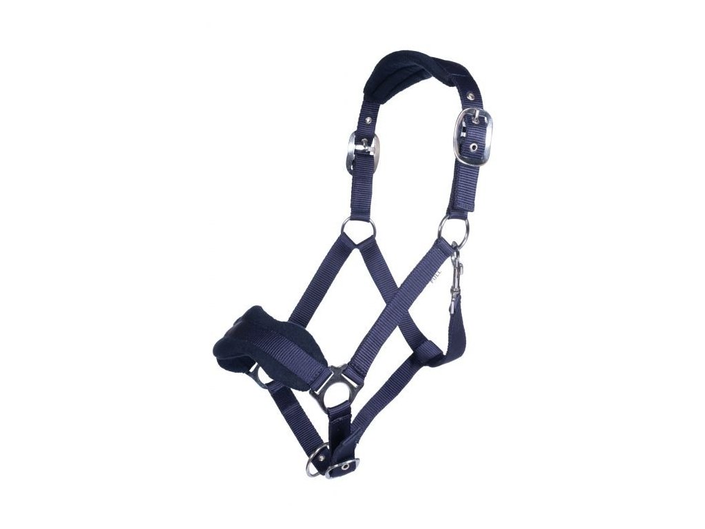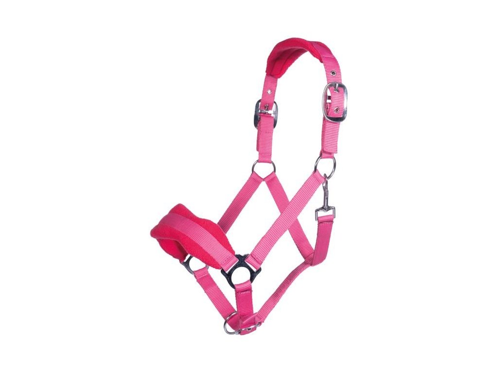 Nylonová ohlávka s fleesovým podšitím a zapínáním na obou stranách.