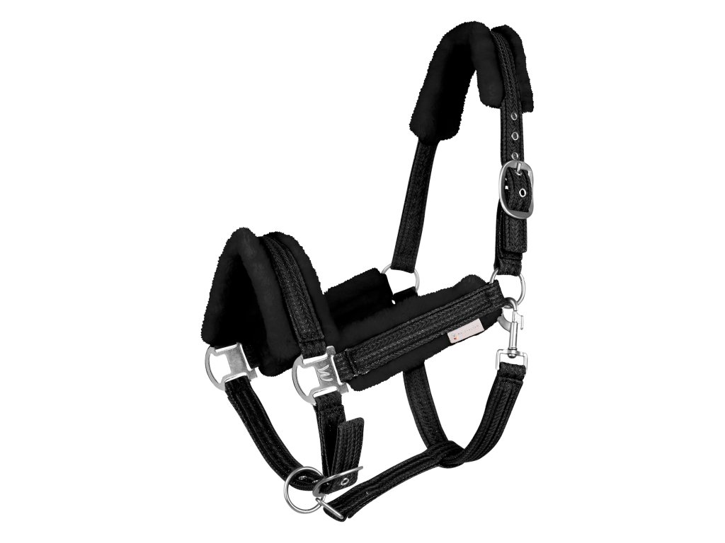 Černá ohlávka Sparkle od značky Waldhausen je ideální volbou pro každodenní manipulaci s koněm. Měkké polstrování ze syntetické kožešiny na nátylníku, nánosníku a lícnicích zajišťuje maximální komfort a předchází odřeninám. Robustní kovové přezky poskytují spolehlivé zapnutí.