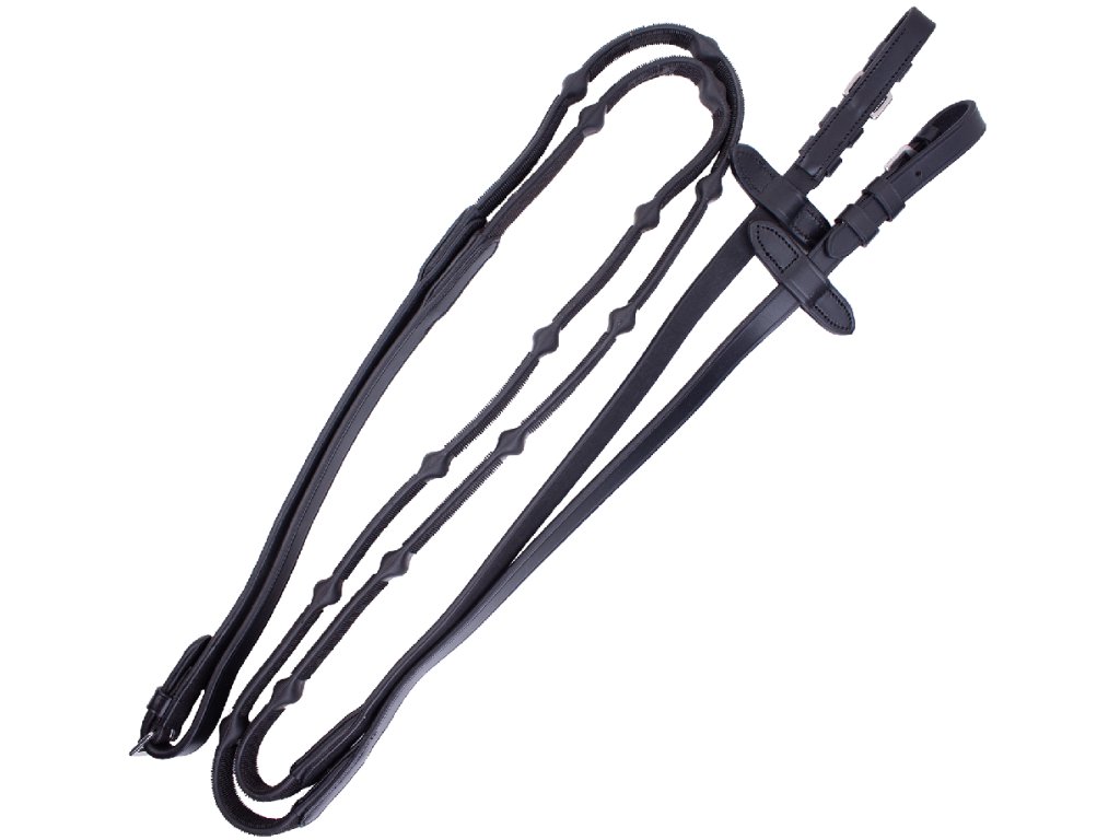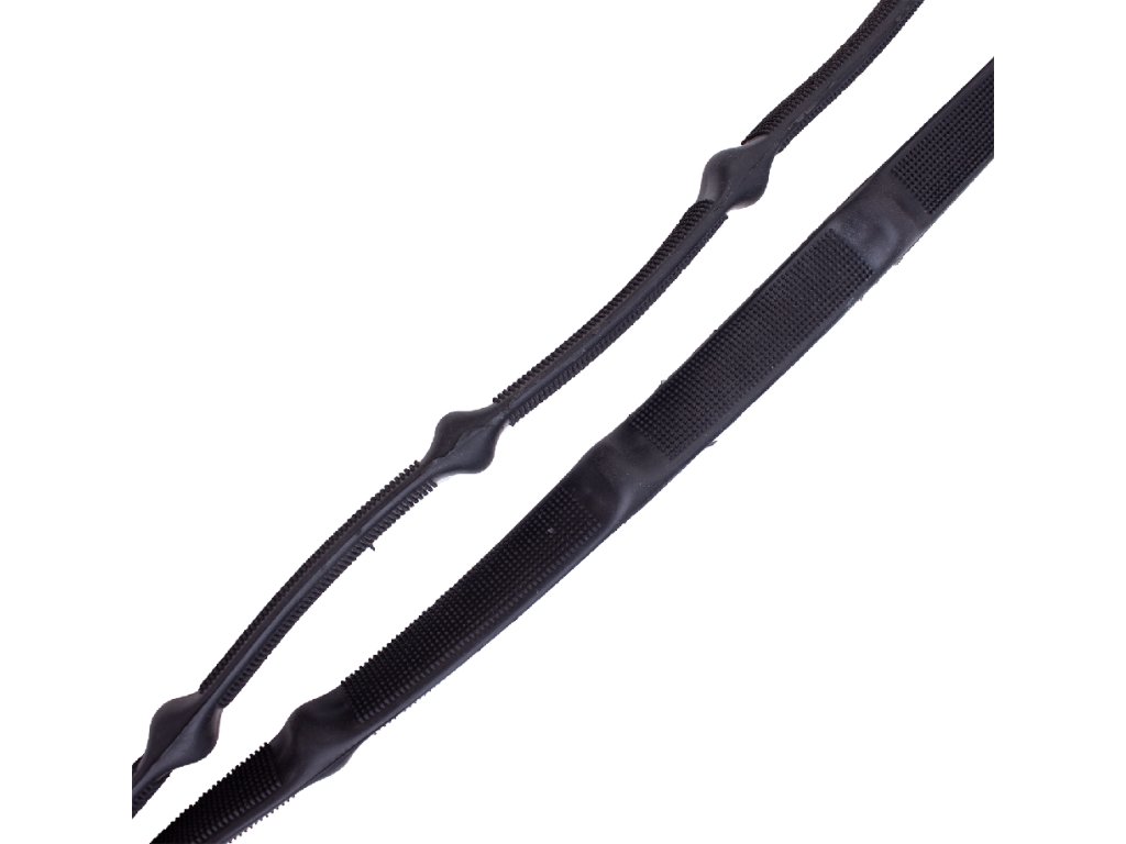 svému provedení dobře sedí v ruce, nekloužou a umožňují jemné, ale účinné vedení koně. Šířka gumy 1,7 cm